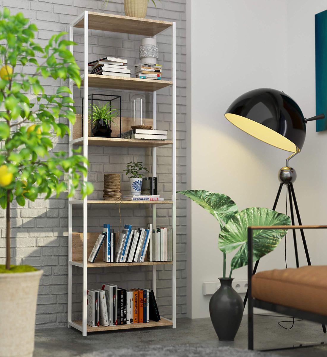- Elegant appearance: the shelf is characterized by simplicity of form, the frame is white, while the shelves are in sonoma oak color,