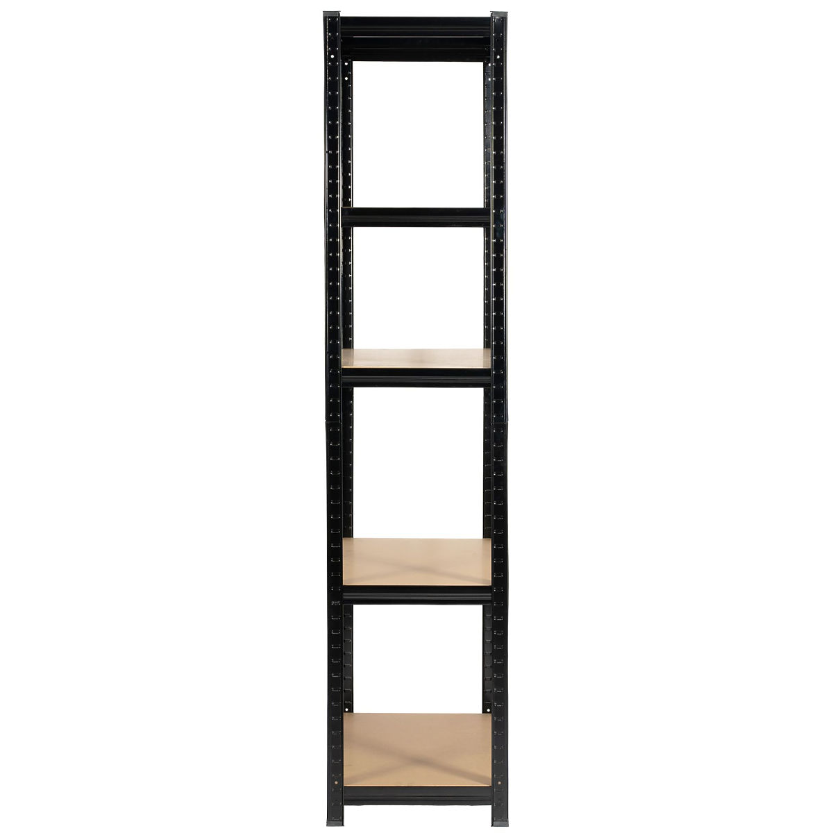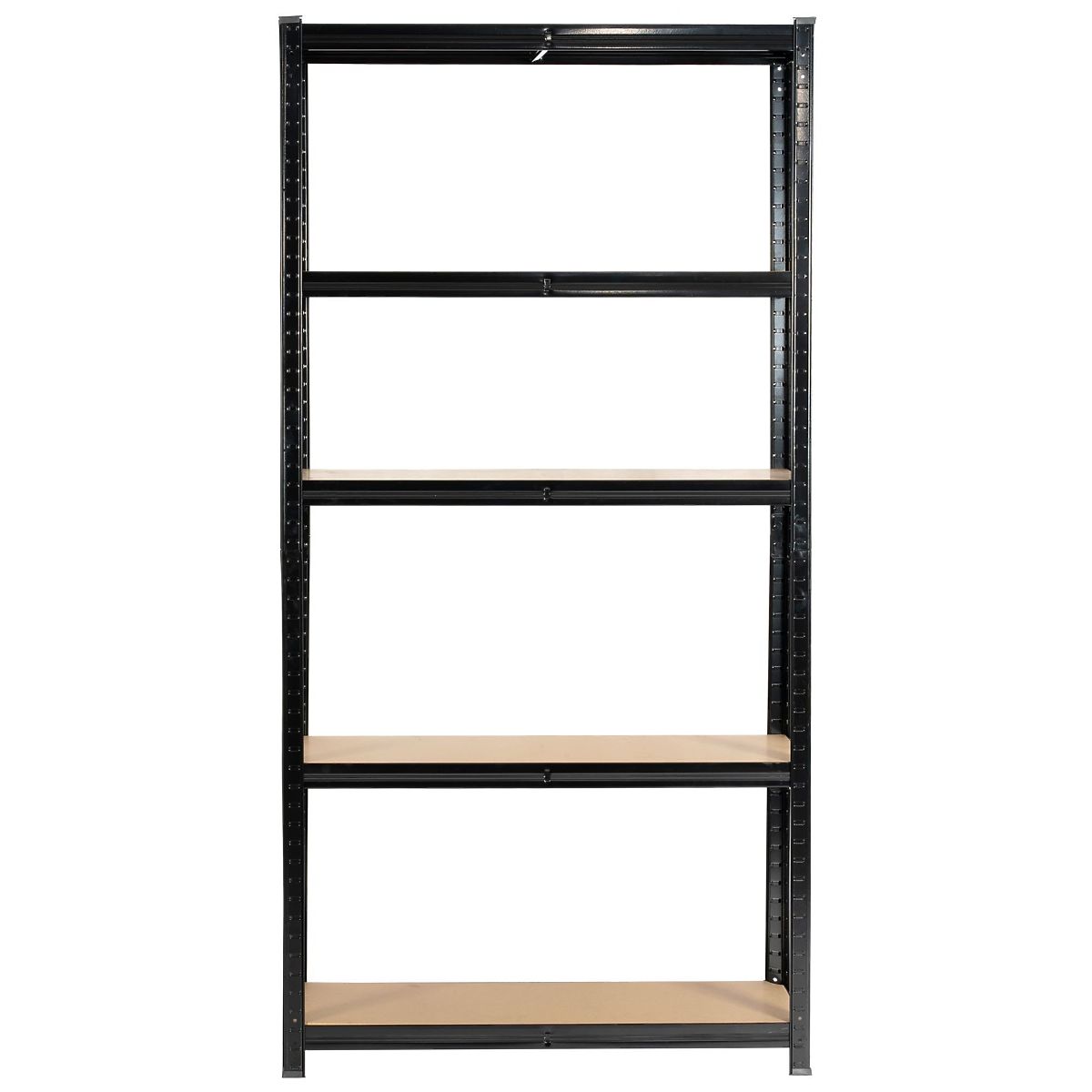 Depth - 40 cmMetal shelf ideal for storage. Suitable for garage, workshop, basement storage, and utility rooms. Black shelf with a width of 90 cm and a height of 180 cm. Shelves made of durable MDF board. Load capacity per shelf is 175 kg.