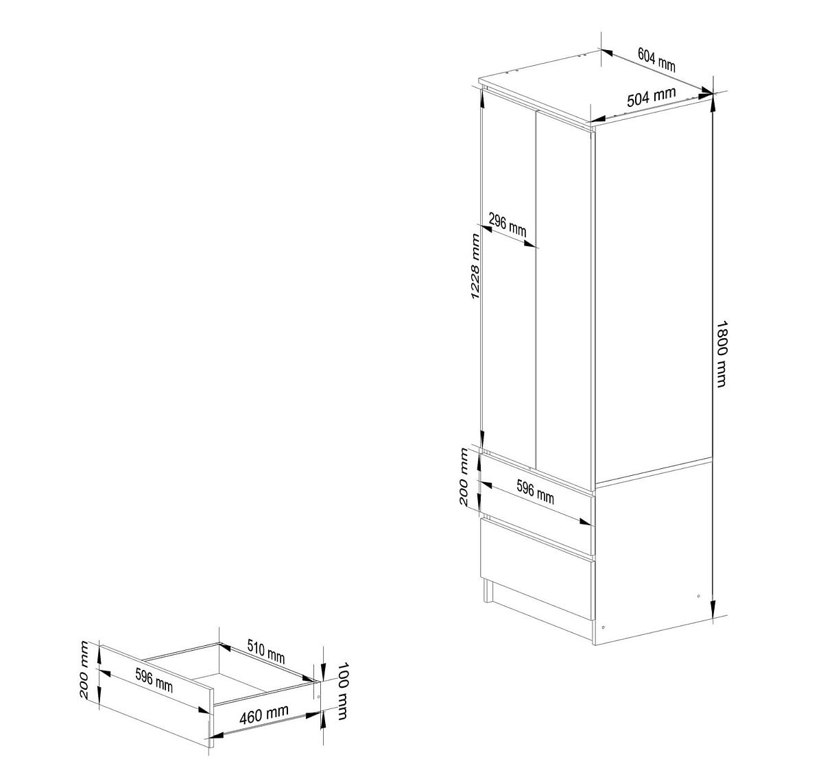 Wardrobe STAR K60 with 2 doors and 2 drawers Beautiful white furniture color.
