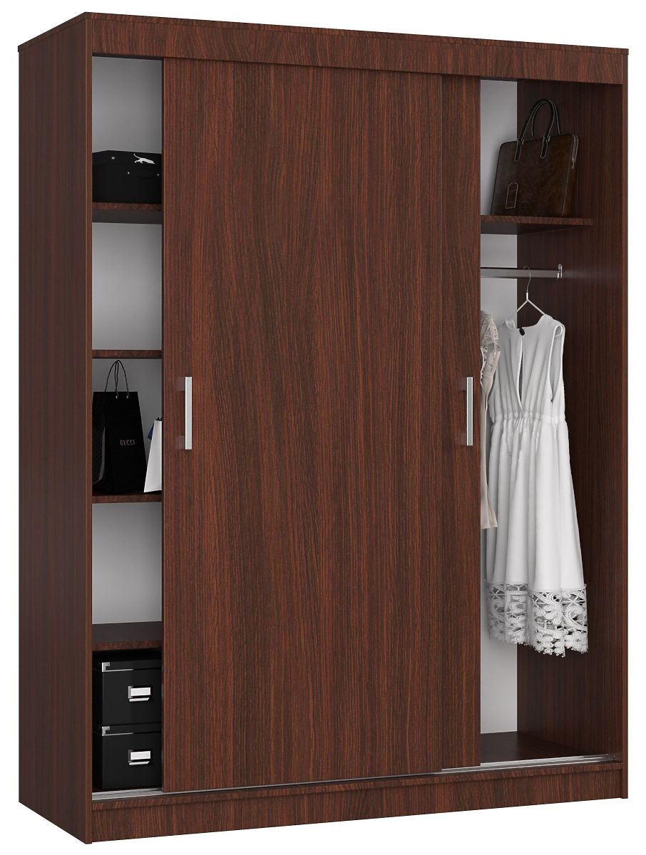 The 150 cm CLP sliding wardrobe in mono wenge color is an ideal choice for classic lovers. The furniture is elegant and simple in form, perfectly suited for the bedroom, living room, or dressing room. It fits well into arrangements emphasizing elegance. The furniture is functional and durable, making it easier to keep clothes and textiles organized. It is designed for 2 people.