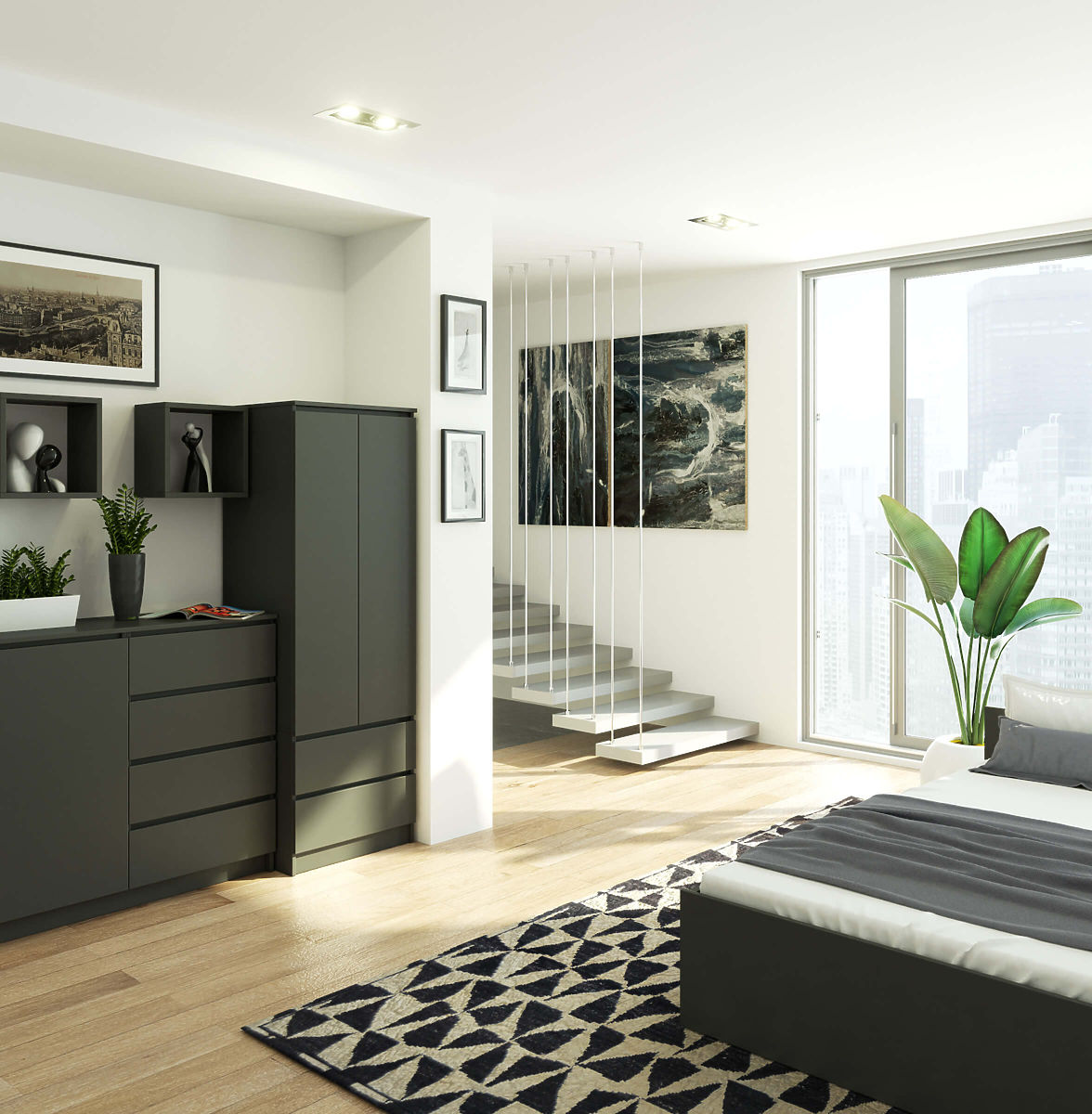 - Drawers move on metal ball-bearing slides from the renowned GTV company- Edges covered with ABS edge banding ensuring high protection against damage
