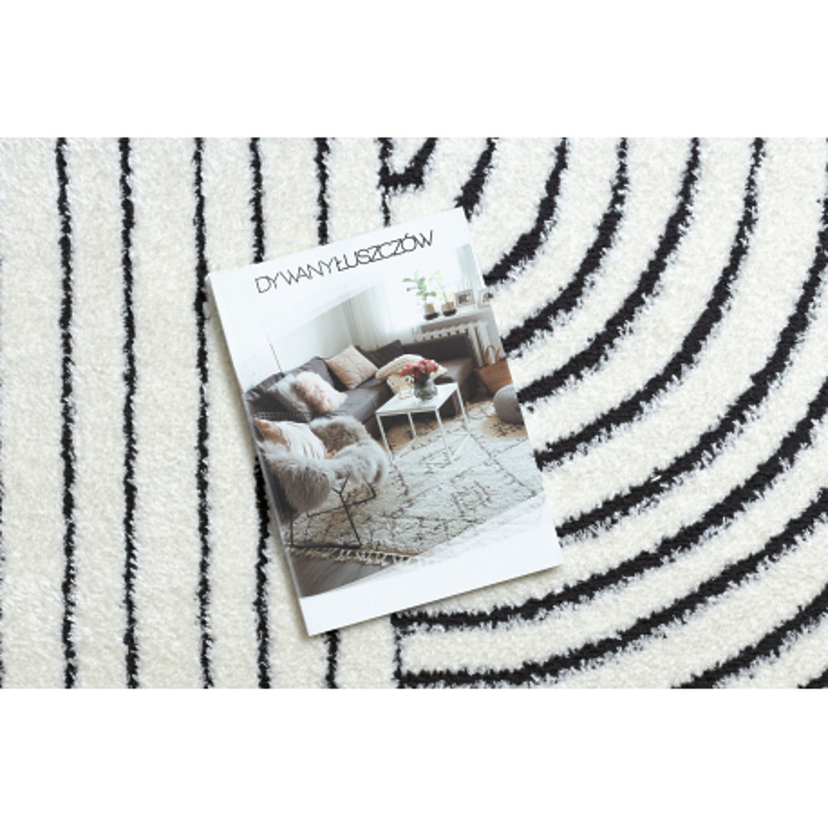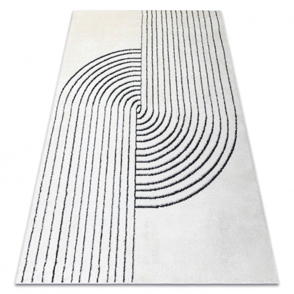 Bring modern elegance to your interior with the rectangular carpet MODE 8587 featuring a geometric pattern in a combination of cream and black colors. This stylish carpet instantly revitalizes the space and adds a sophisticated, contemporary character. It is perfect for the living room, bedroom, or study, where it creates a pleasant and harmonious atmosphere. The carpet is made of 100% polyester, ensuring durability, long life, and easy maintenance. The 15 mm thickness provides a comfortable feel underfoot, while the weight of 1.8 kg/m² guarantees stability and strength on the floor. The combination of cream and black shades along with the modern geometric motif easily complements various furniture styles and accessories, making the carpet a perfect fit for your interior.