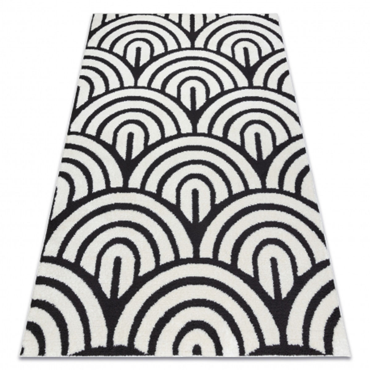 Modern rectangular carpet with a cream and black shell motif. .. more