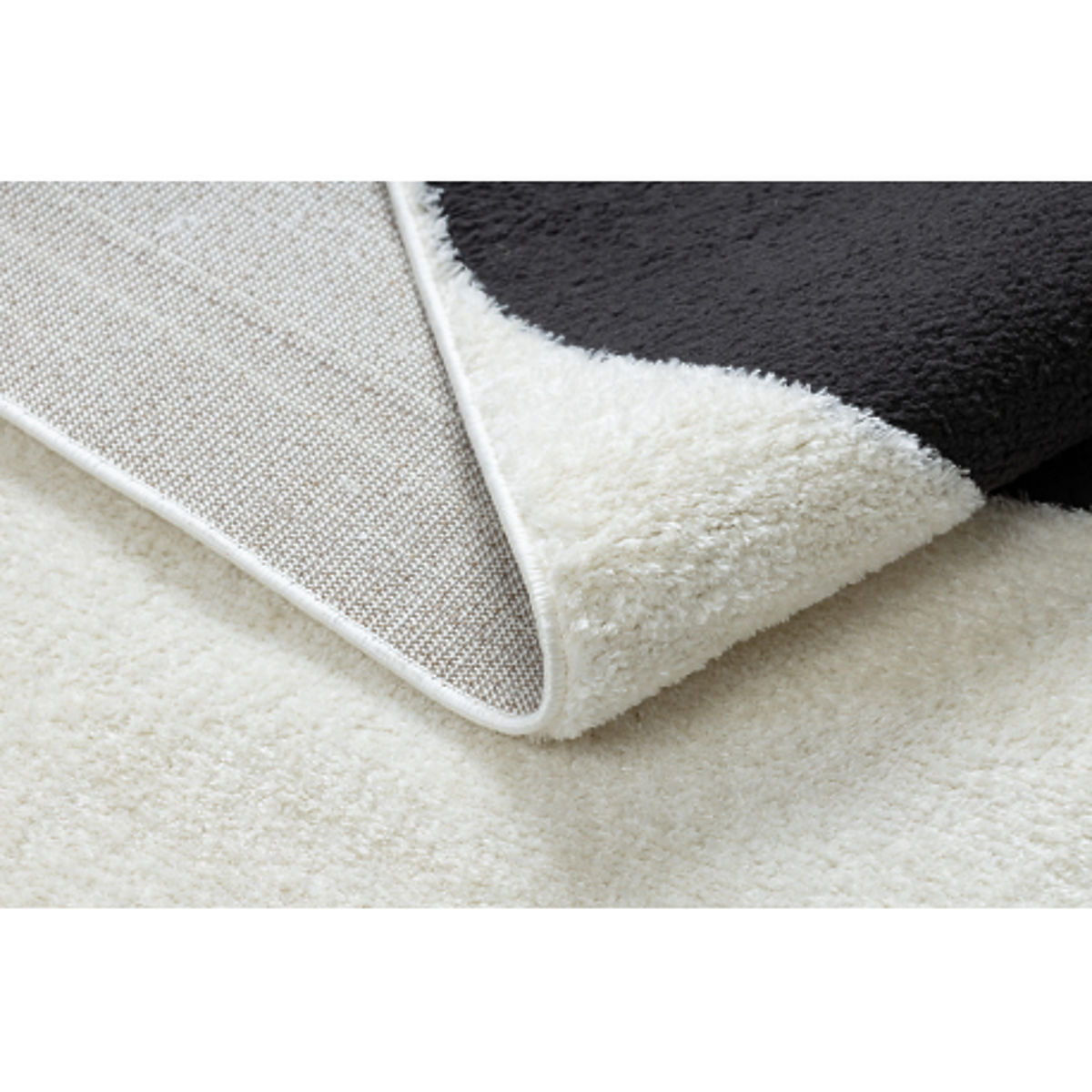 Rectangular carpet with abstract cream and black pattern. .. more