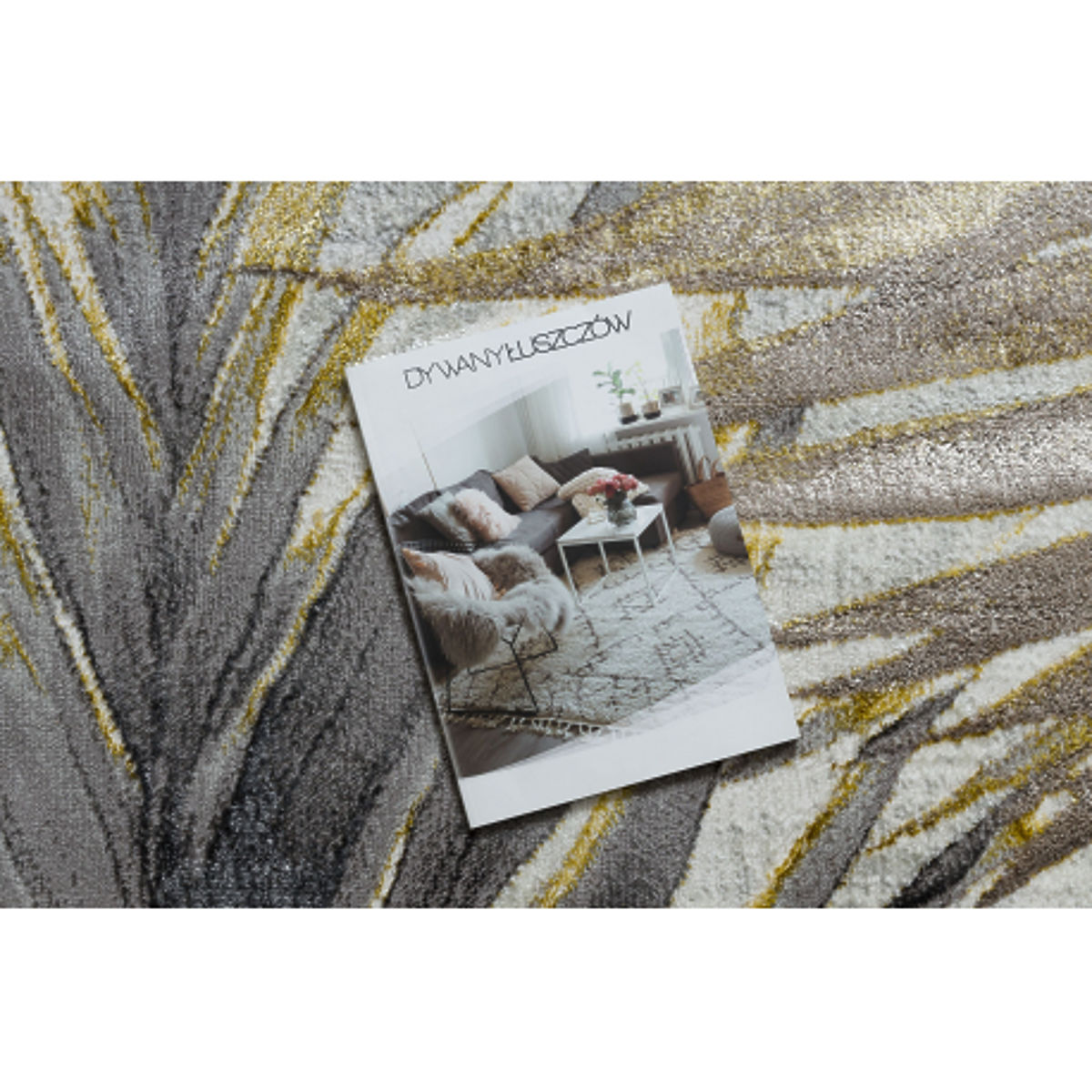 The BLISS Z217AZ276 carpet in a combination of gold and gray tones brings a touch of exoticism and modern elegance to any interior. Its palm leaf motif is stylish and pleasantly enlivens any space without being intrusive. The gold accents add a subtle touch of luxury to the carpet, while the gray color balances it visually, allowing for easy integration into various types of interiors. The carpet is made from 100% polyester yarn, ensuring a soft, pleasant surface and good resistance to everyday wear. The textured design with thicknesses of 6 mm and 8 mm creates a three-dimensional effect, beautifully highlighting the leaf motif. A weight of around 2.1 kg/m² (varies by pattern) underscores the quality craftsmanship and stability. The BLISS Z217AZ276 is perfect for the living room, bedroom, study, or an elegant hallway, adding personality, style, and a pleasant atmosphere to the space.