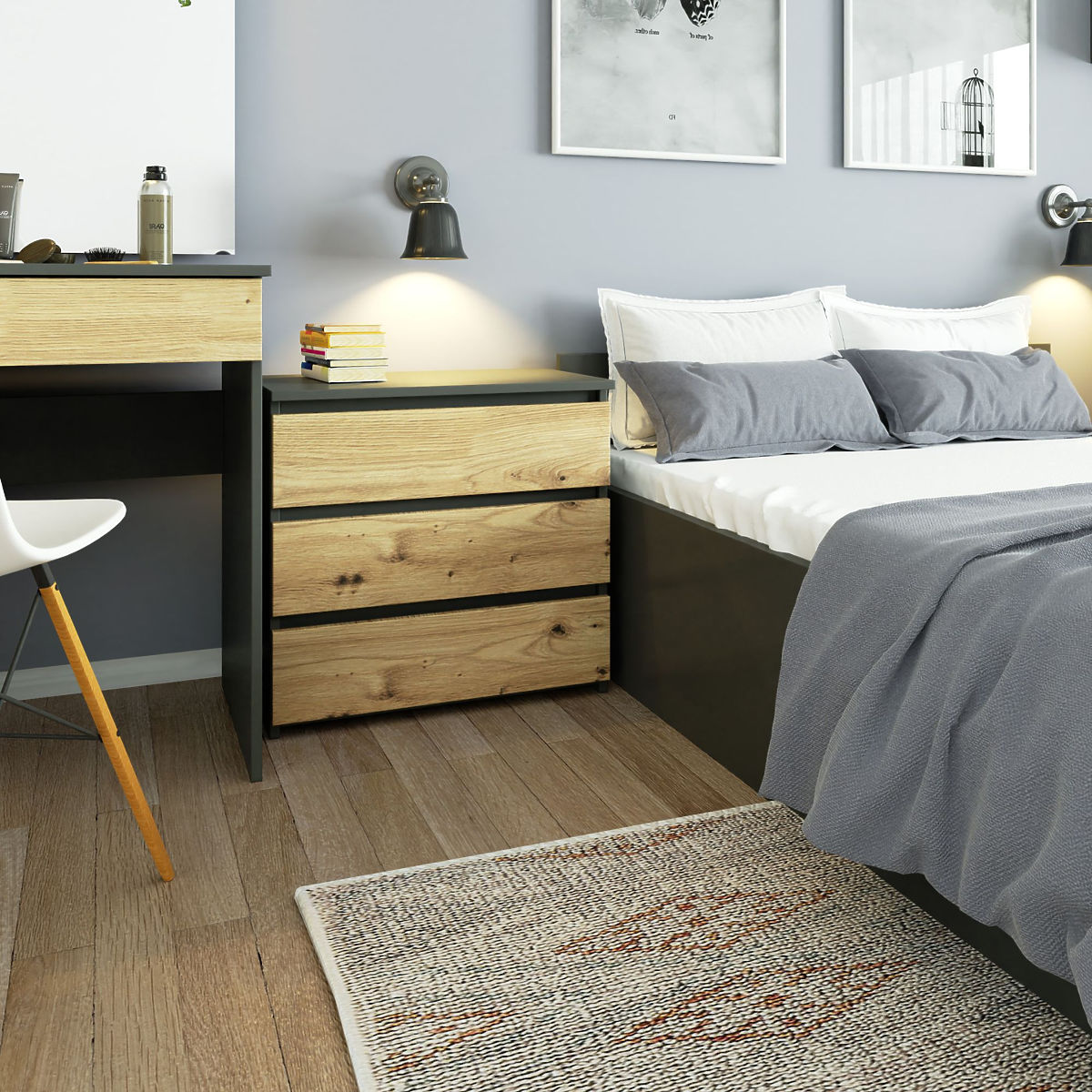 Graphite Gray and Artisan Oak chest of drawers with 3 drawers. .. more