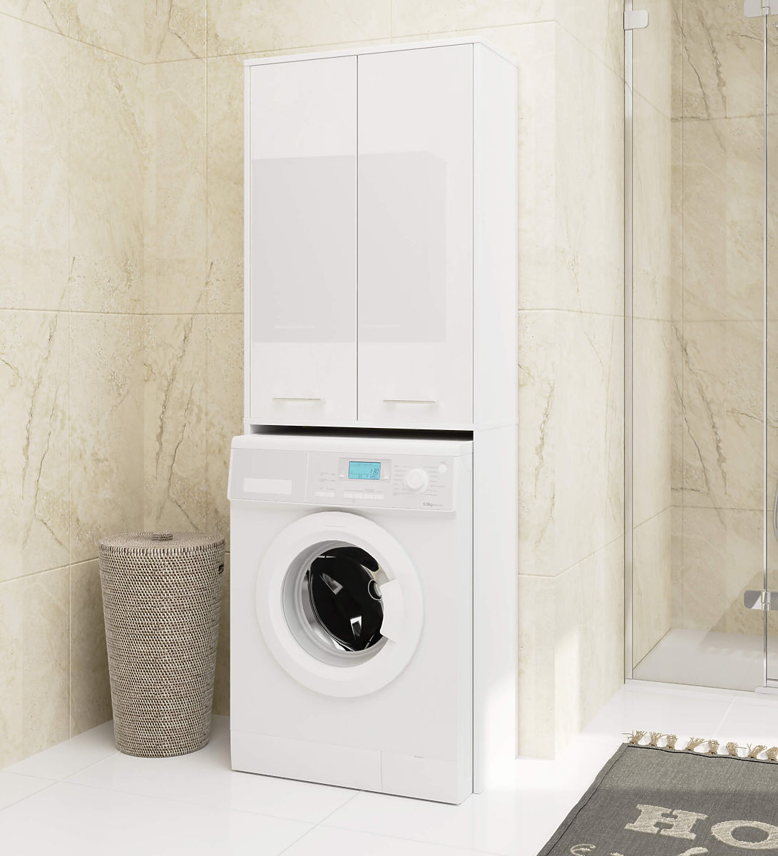 If we want our bathroom to be both comfortable and stylish, we should opt for solid and functional furniture. Such is certainly the cabinet above the washing machine. It is an ideal way to utilize the space above the washing machine, which usually remains unused. The optimal dimensions of this column make it a great solution for bathrooms with limited space. Its ergonomic shape allows it to be used in any room. This furniture, consisting of an extension above the washing machine and a cabinet above it, creates a large amount of storage space for various items. We can store detergents or hygiene products in the cabinet. These shelves are intended for storing personal cosmetics or towels. The beautiful shade of white with glossy white fronts ensures an elegant bathroom appearance. The laminated board from which this cabinet is made is a high-quality material. It ensures the durability and strength of the furniture, as well as maintaining its aesthetic appearance.