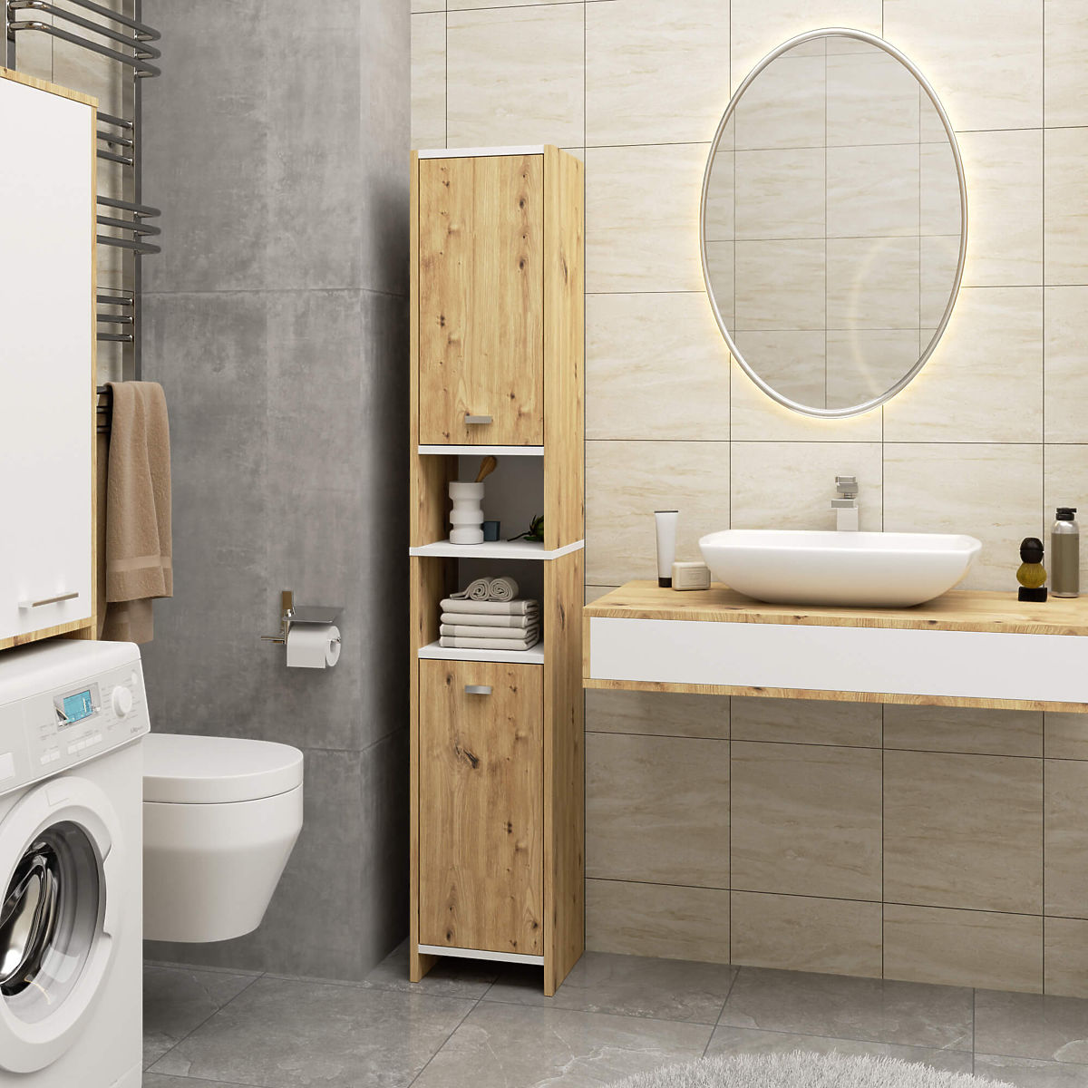Lukahome.co.uk » Bathroom & Toilet / Koupelnové skříňky / BATHROOM SHELF BETI 2D 2W ARTISAN OAK WHITE