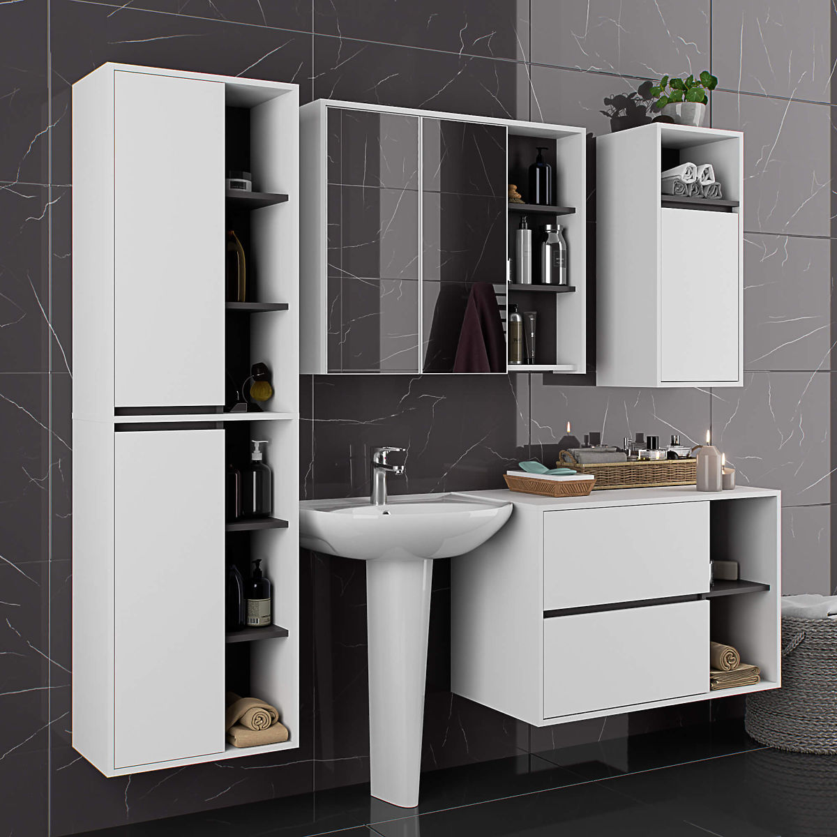 Wall-mounted cabinet under the bathroom sink Made from 16 mm abrasion-resistant laminated board. Edges are finished with ABS veneer.