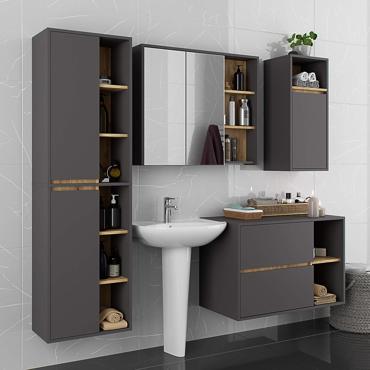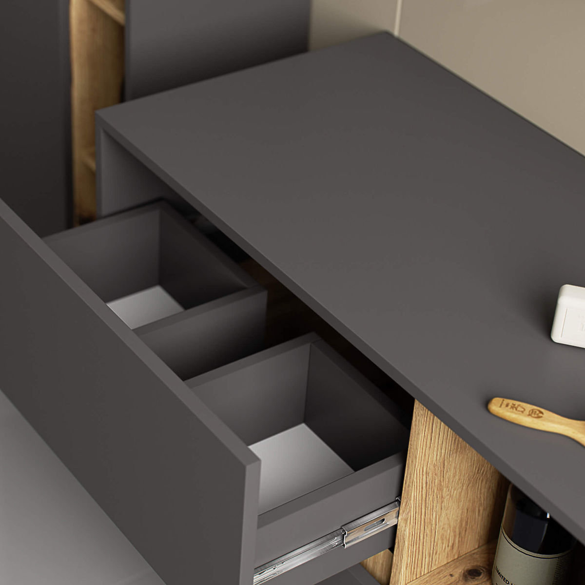 Lukahome.co.uk » Bathroom & Toilet / Koupelnové skříňky / BATHROOM CABINET UNDER SINK VAMI W 90 cm 2 DRAWERS GRAPHITE GREY / ARTISAN OAK