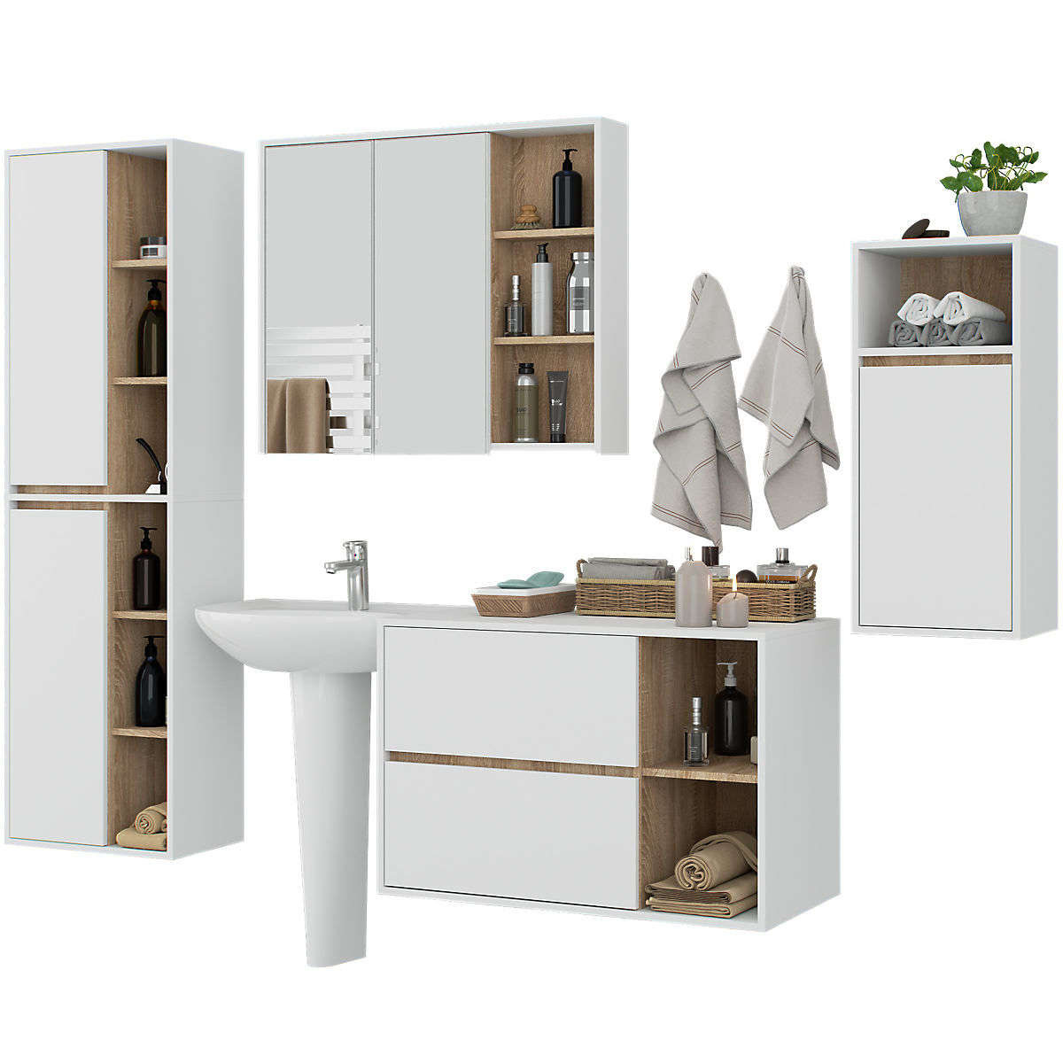 Lukahome.co.uk » Bathroom and toilet / Bathroom sets / SET OF HANGING BATHROOM FURNITURE VAMI WHITE / SONOMA OAK