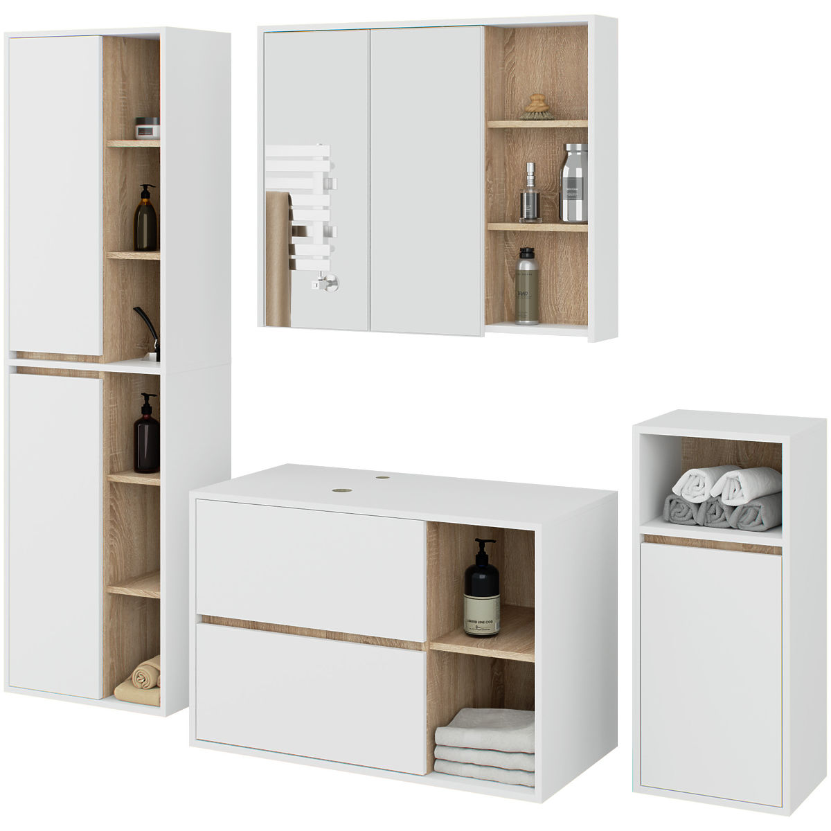 Lukahome.co.uk » Bathroom and toilet / Bathroom sets / SET OF HANGING BATHROOM FURNITURE WITH OPENINGS VAMI WHITE / SONOMA OAK