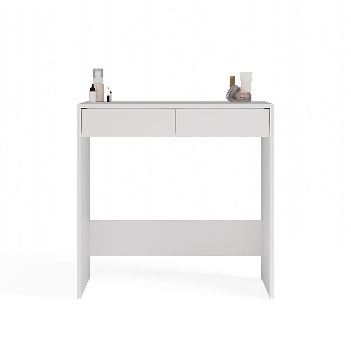 Elegant white desk with two drawers and modern design. .. more