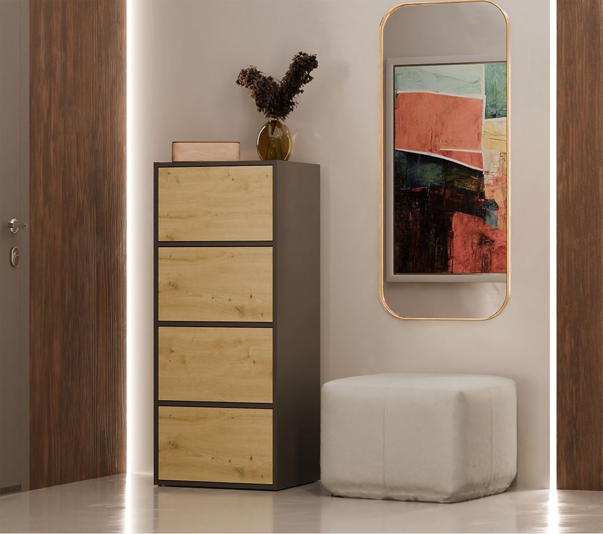 Anthracite and artisan oak sideboard with 4 doors and TIP-ON system. .. more