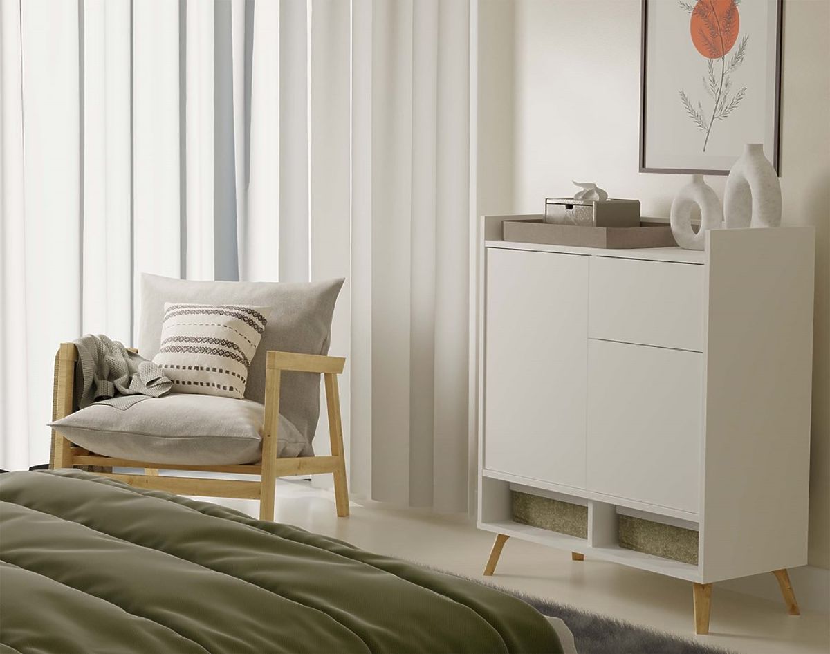 COLIN Sideboard Cabinet 2 Doors 1 Drawer with Legs WHITE