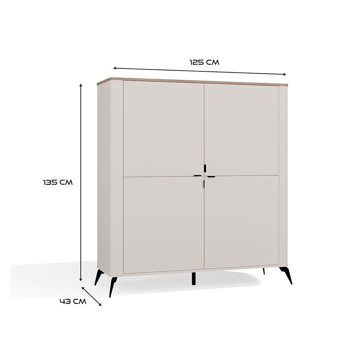 The CORDOBA 4D sideboard is perfect for those who appreciate style, functionality, and high-quality craftsmanship. The combination of the fashionable cashmere shade with the natural decor of the Castello Oak top gives the furniture a timeless character that complements both modern and classic interiors.