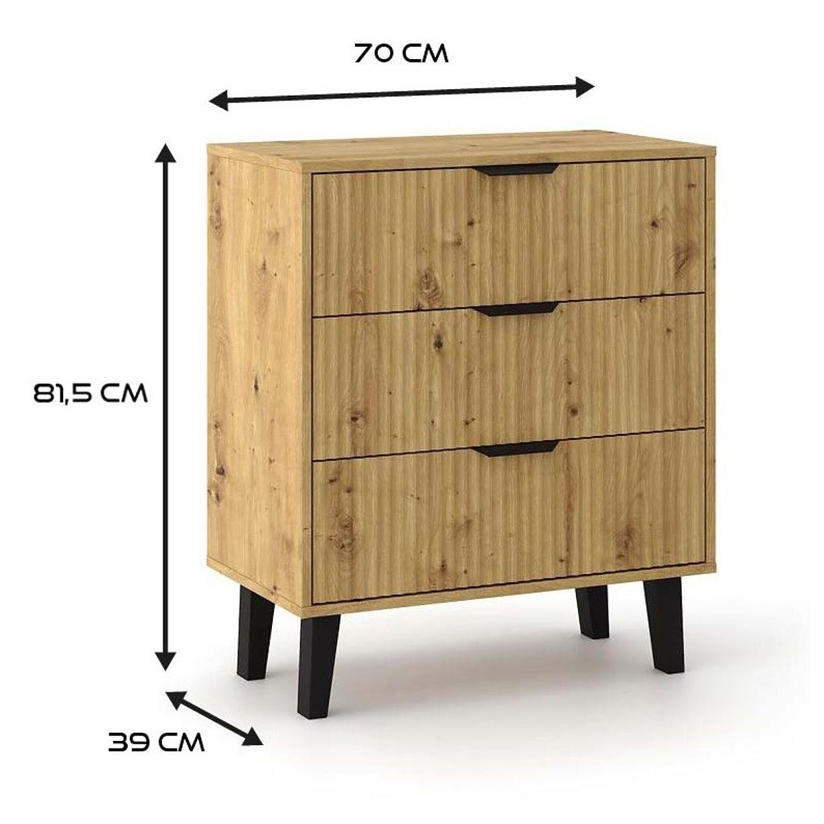 Modern chest of drawers with grooved fronts and spacious storage. .. more