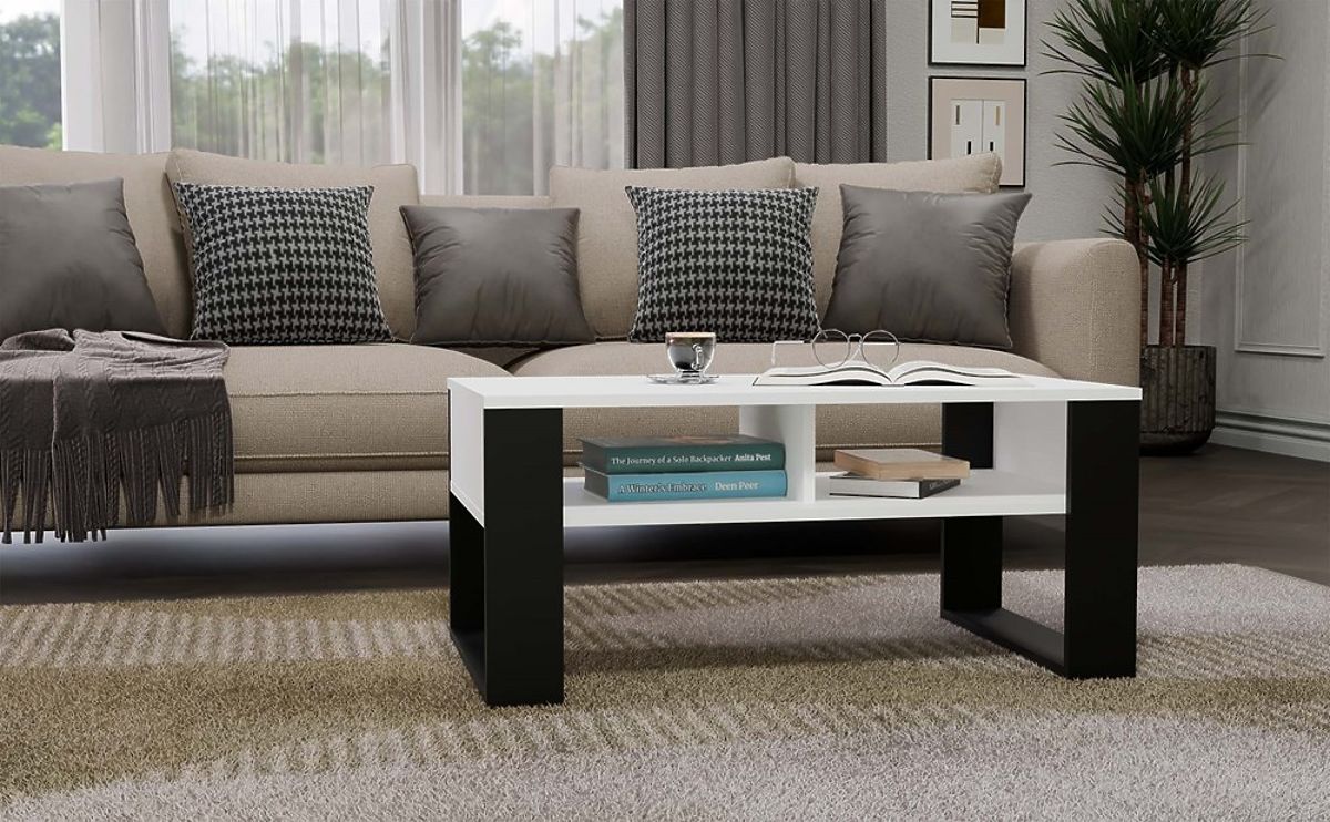 Modern coffee table with two spacious shelves, perfect for living rooms. .. more
