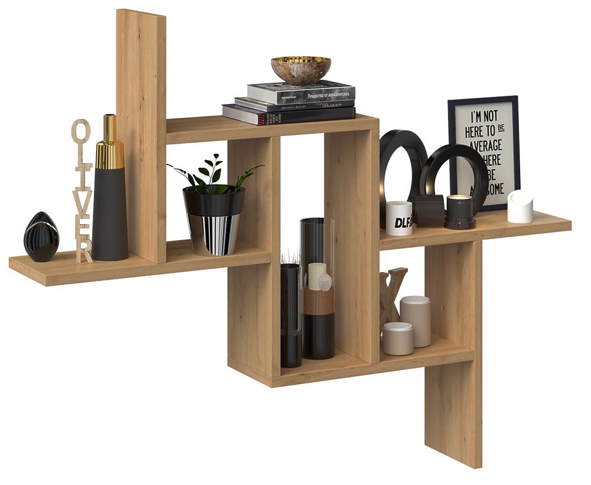 Wall-mounted shelf in artisan oak for versatile room use. .. more