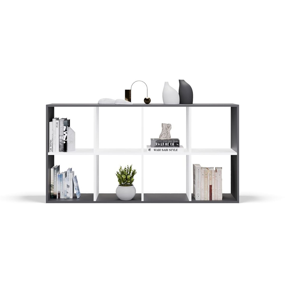 Anthracite and white shelf with 8 versatile open shelves. .. more