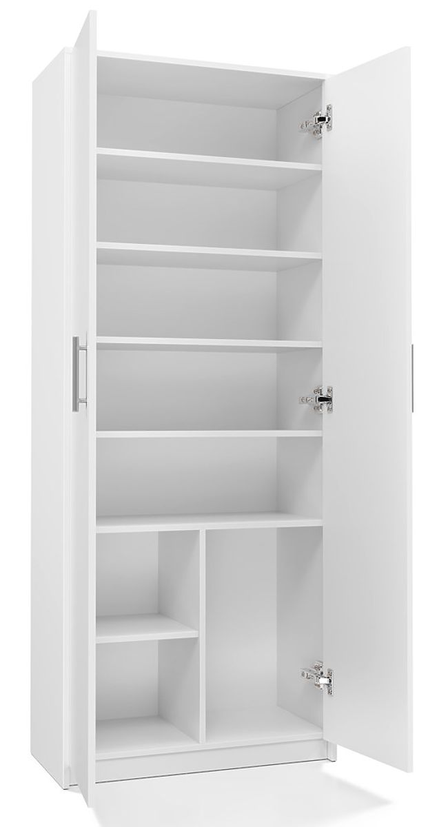 Matte white shelf with 8 shelves and 2 doors. .. more