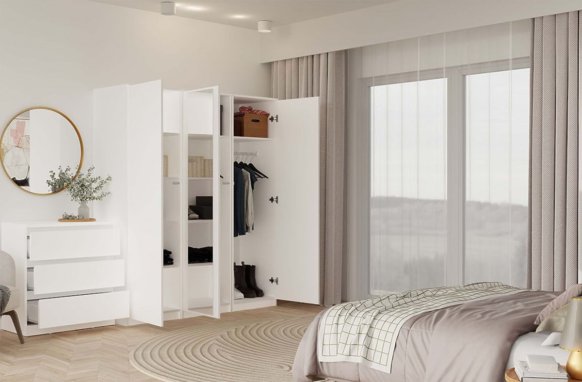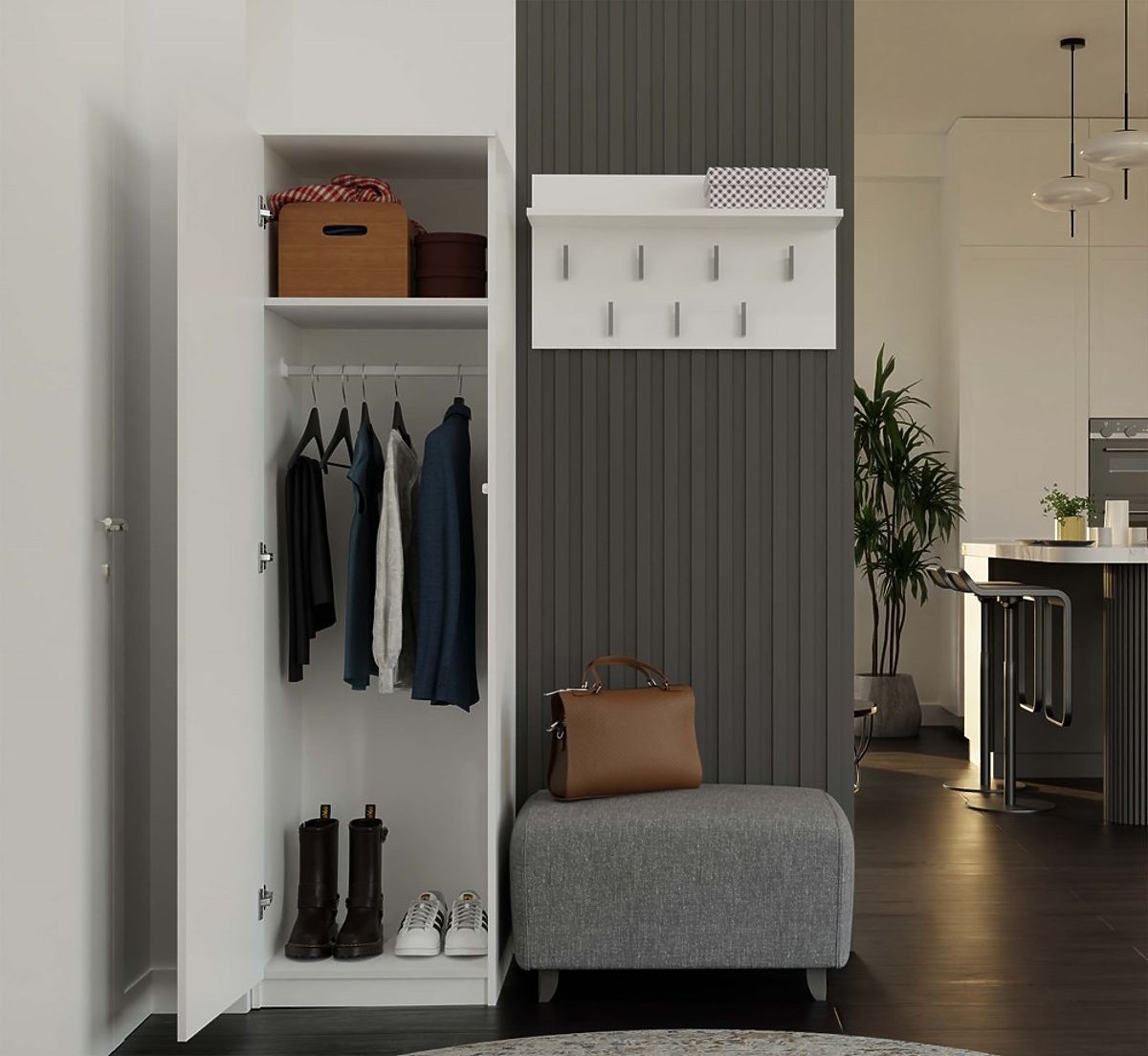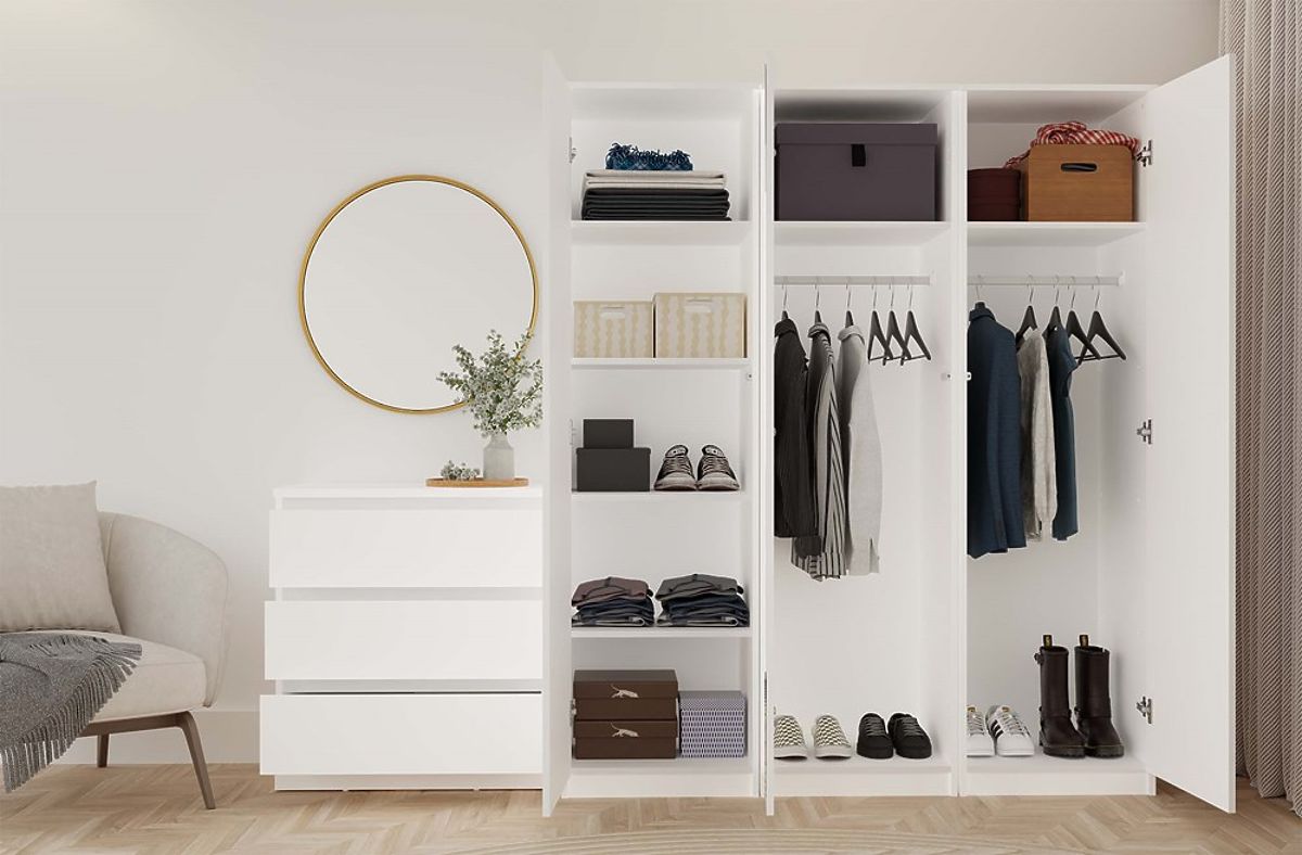 Accessories for attaching the wardrobe to the wall are included in the package. To ensure furniture stability and user safety, the wardrobe must be attached to the wall.
