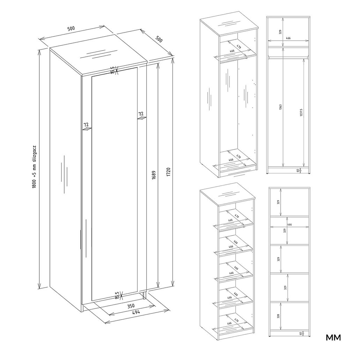 WARDROBE SD-50 MIRROR – NARROW WARDROBE WITH MIRROR ON THE FRONT