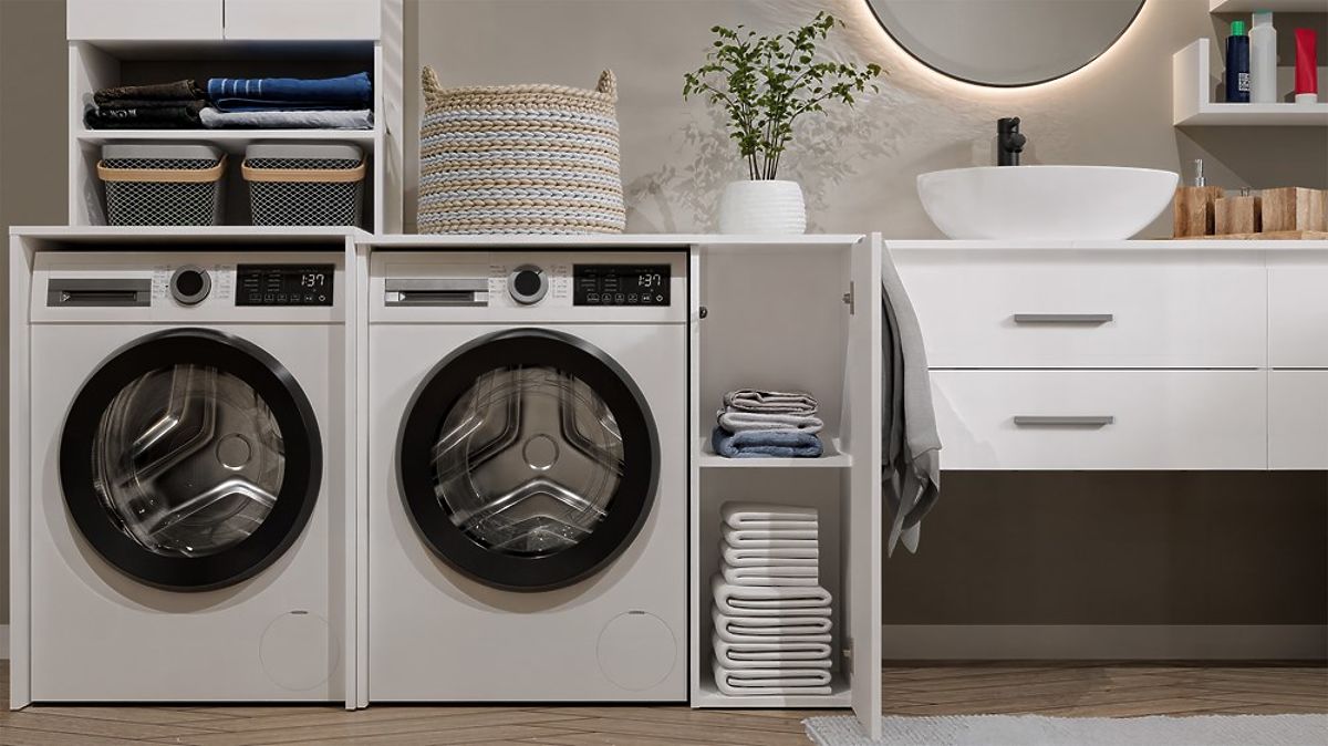 Built-in washing machine – an elegant way to hide appliances in the bathroom