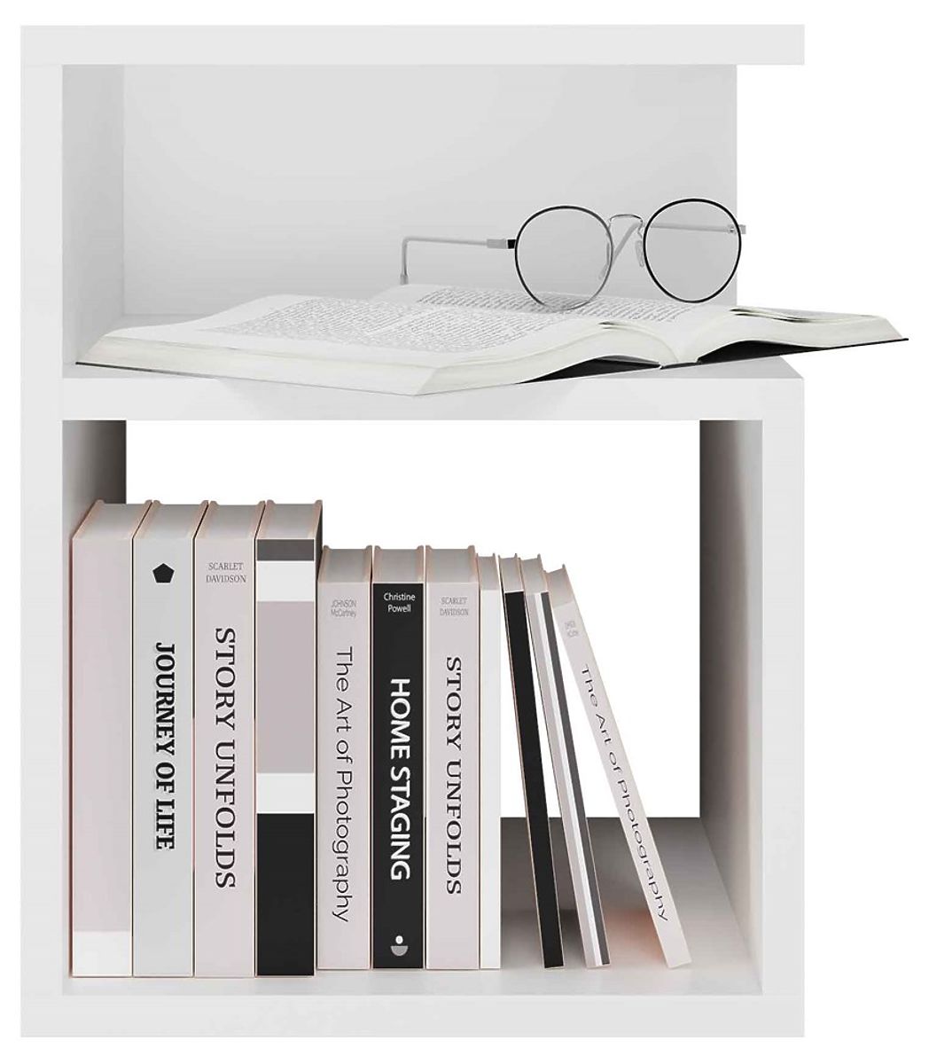 Matte white nightstand with minimalist design and solid craftsmanship. .. more