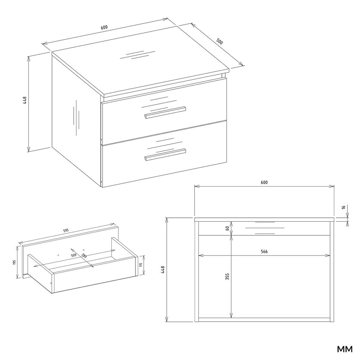 The furniture is equipped with two spacious drawers, ideal for storing cosmetics, towels, or other bathroom accessories. Both drawers have full depth – no cutouts for the siphon. Using a wall-mounted siphon allows full utilization of their space.