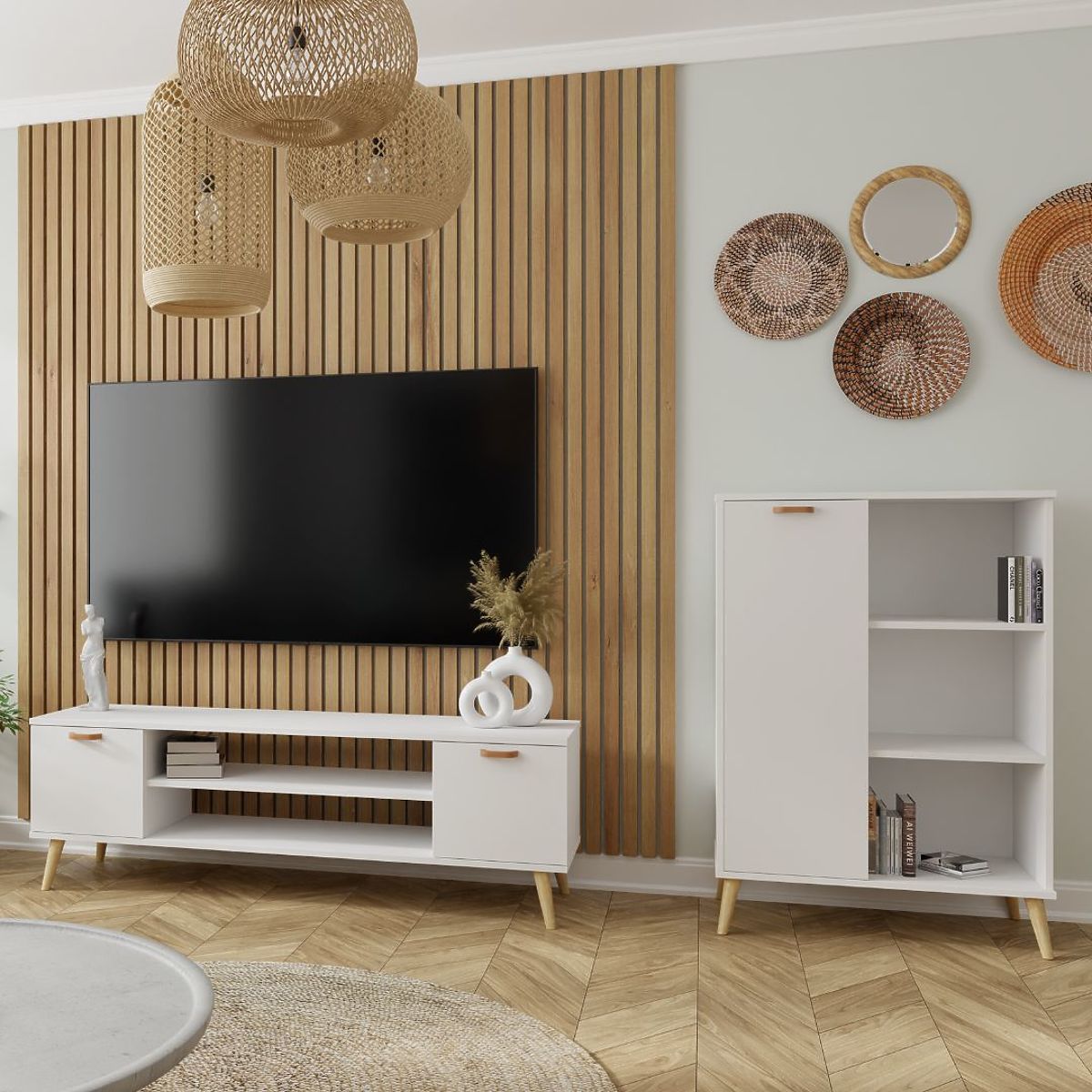 The FONDI cabinet is an exceptionally functional piece of furniture that fits perfectly into your living room. It combines simplicity with an elegant design inspired by Scandinavian style, which draws attention. Thanks to its thoughtful design, the FONDI cabinet is ideal for modern interiors, adding lightness and freshness. Its minimalist form combined with high-quality craftsmanship makes it not only practical but also aesthetic. The FONDI cabinet is the perfect choice for those who value functionality and style in one.