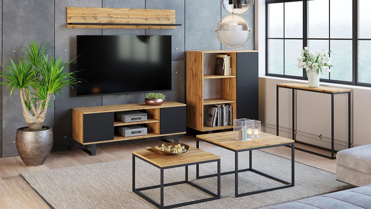 The FONDI cabinet is an exceptionally functional piece of furniture for your living room, combining simplicity with an eye-catching appearance inspired by the loft style. With minimalist forms and raw materials such as metal elements and wood, the cabinet brings a unique atmosphere and character to the interior. It is the perfect solution for those who appreciate practicality and modern design in one. The FONDI cabinet is both functional and aesthetic, offering space for storage and the possibility to display favorite decorations.