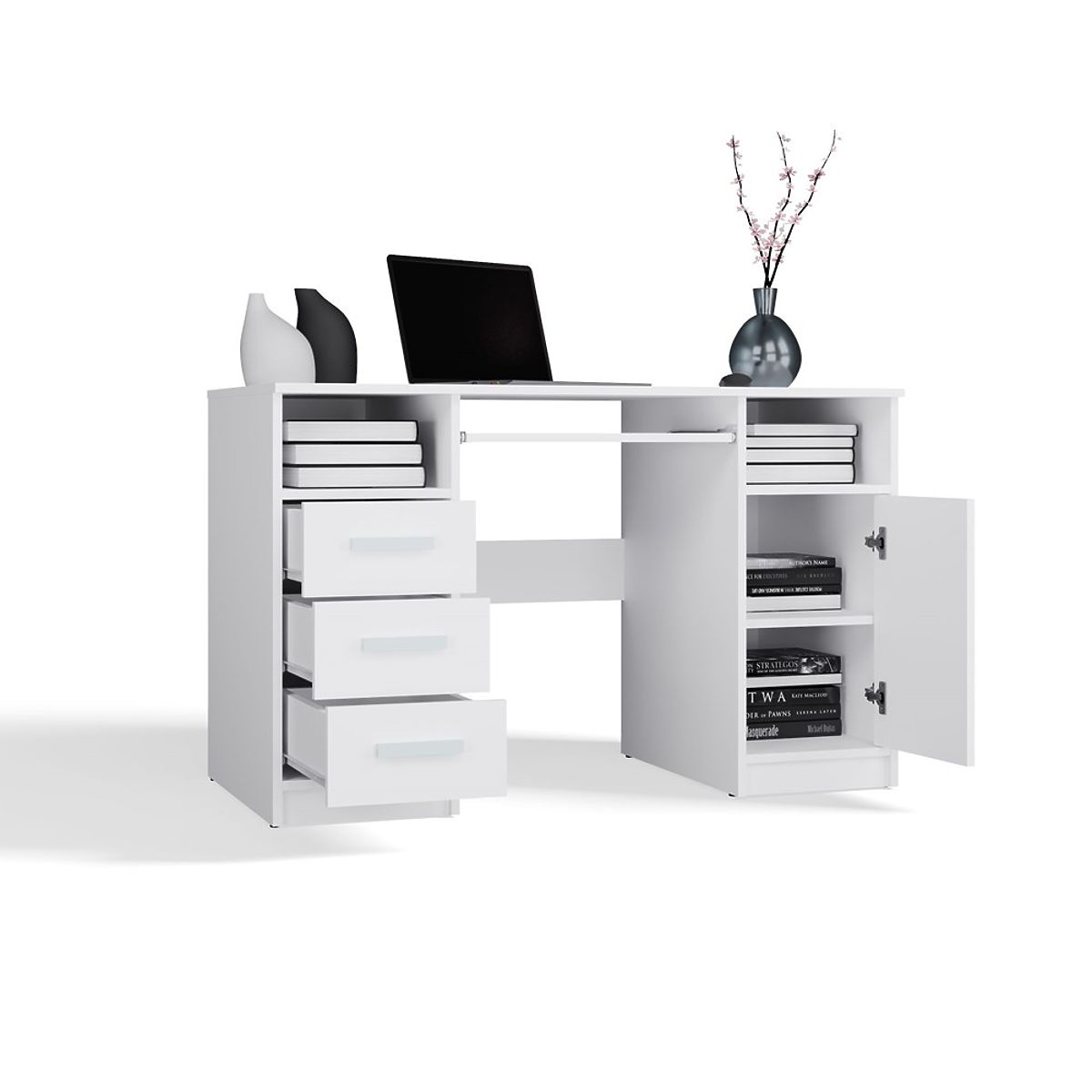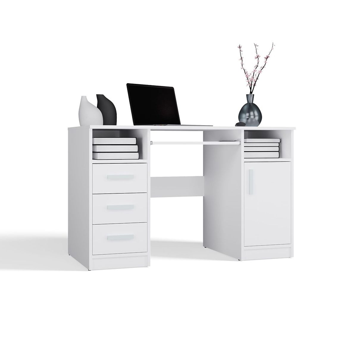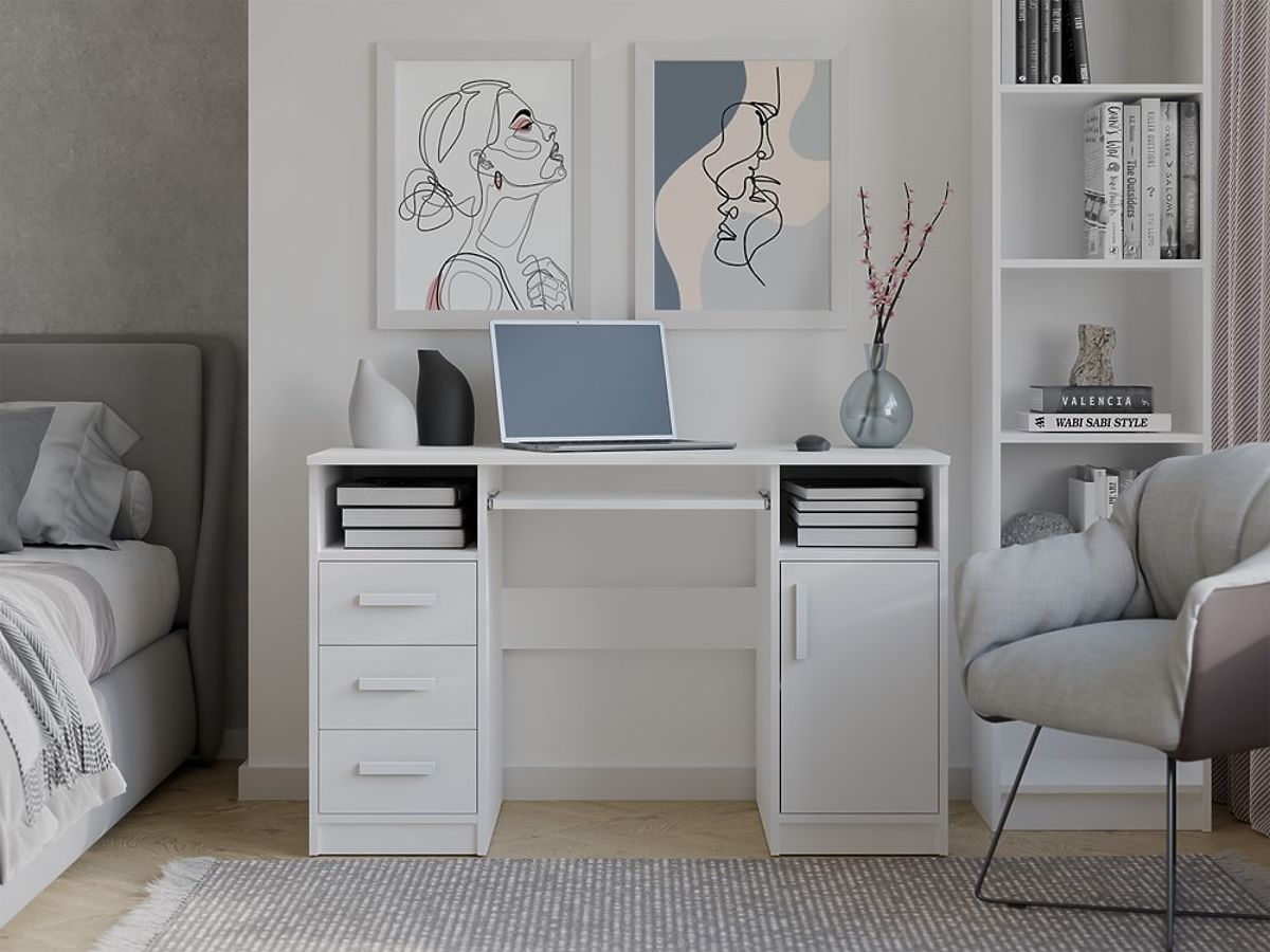 DELTA WHITE DESK 120 cm 3 Drawers Cabinet Shelf for Office Room Laptop