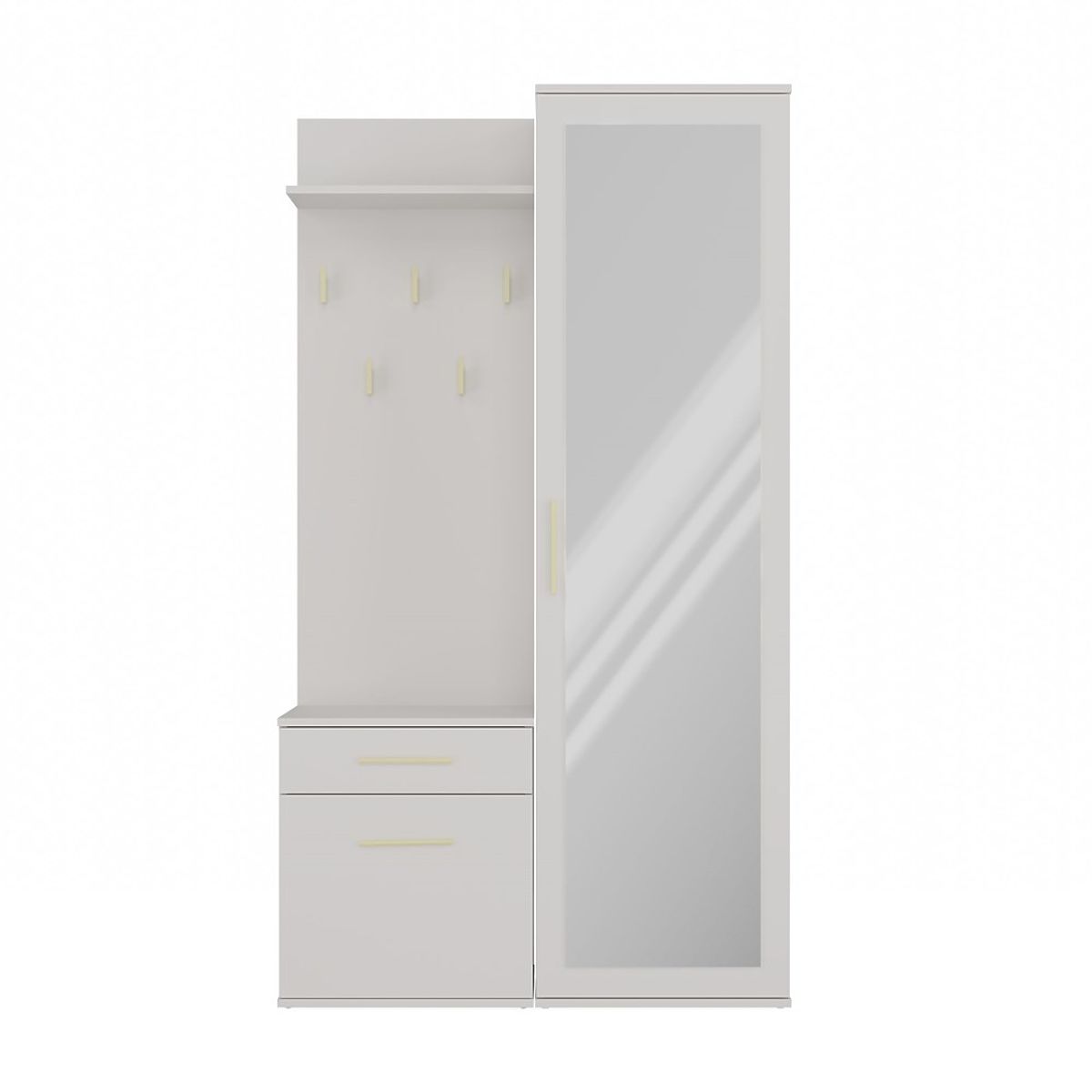 • Wardrobe with mirror, cabinet, and coat rack can be mounted close together or separately.