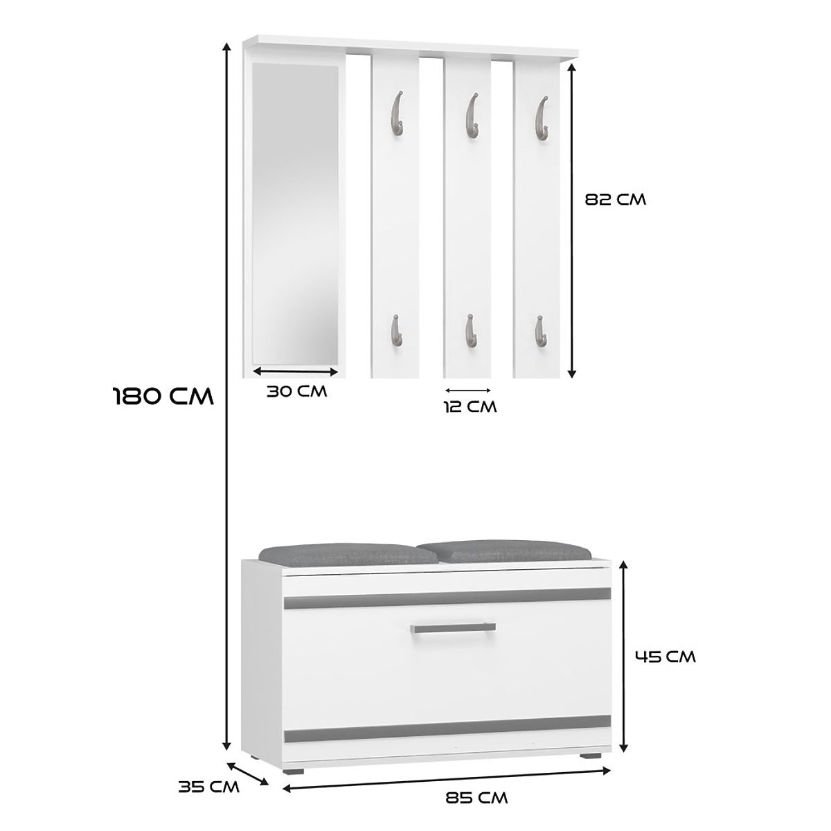 White matte wardrobe with mirror, hooks, and shoe cabinet. .. more