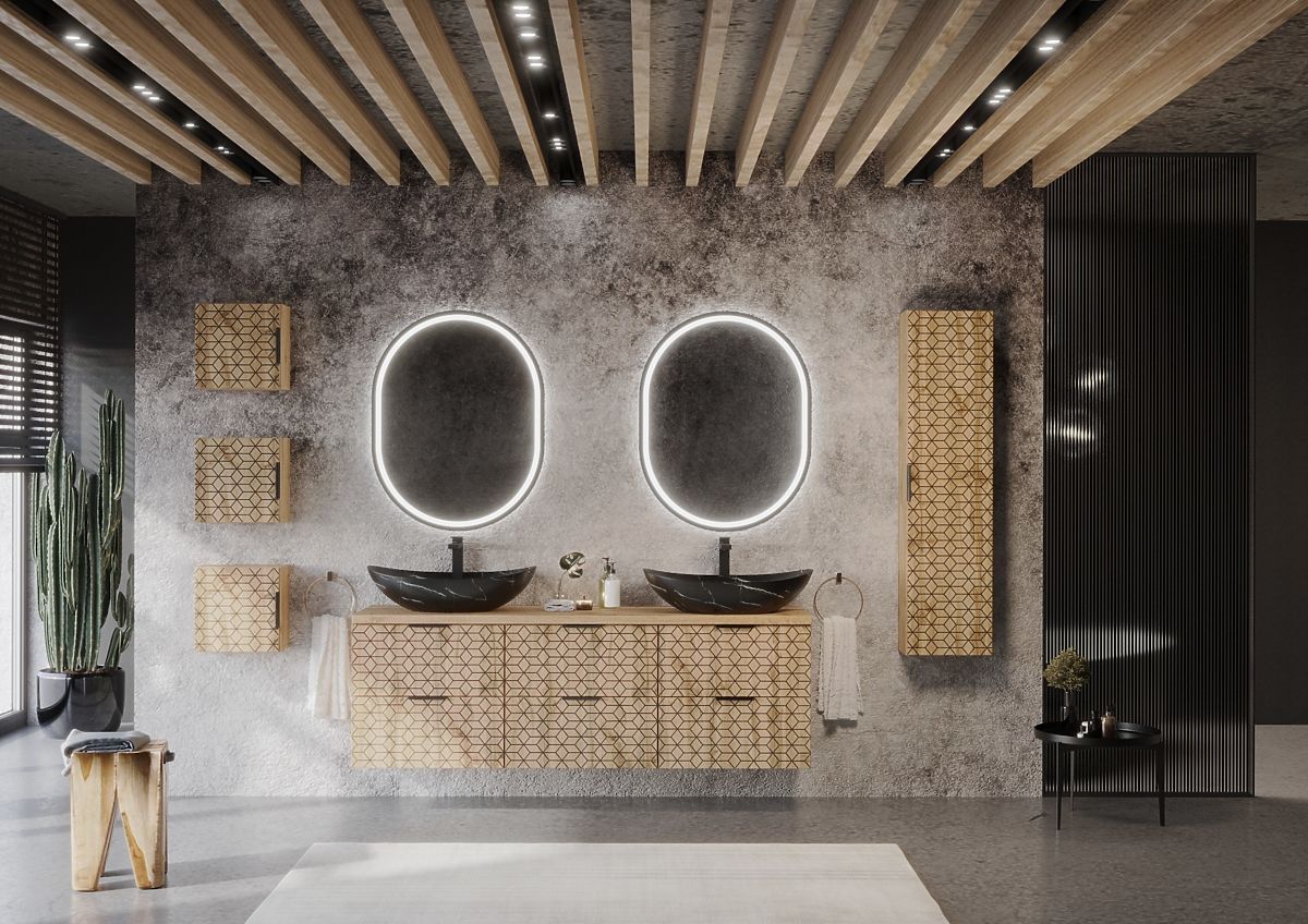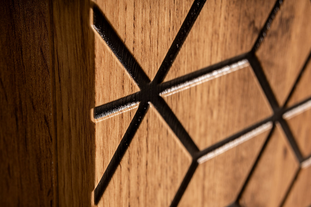 Wall-mounted cabinet with one door and Wotan Oak finish. .. more