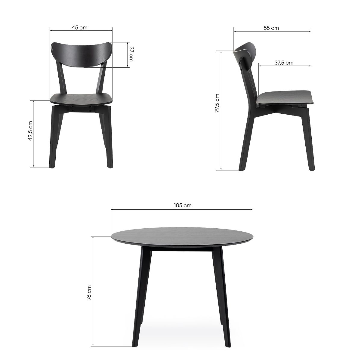 Roxby dining set with a round table and four black chairs. .. more