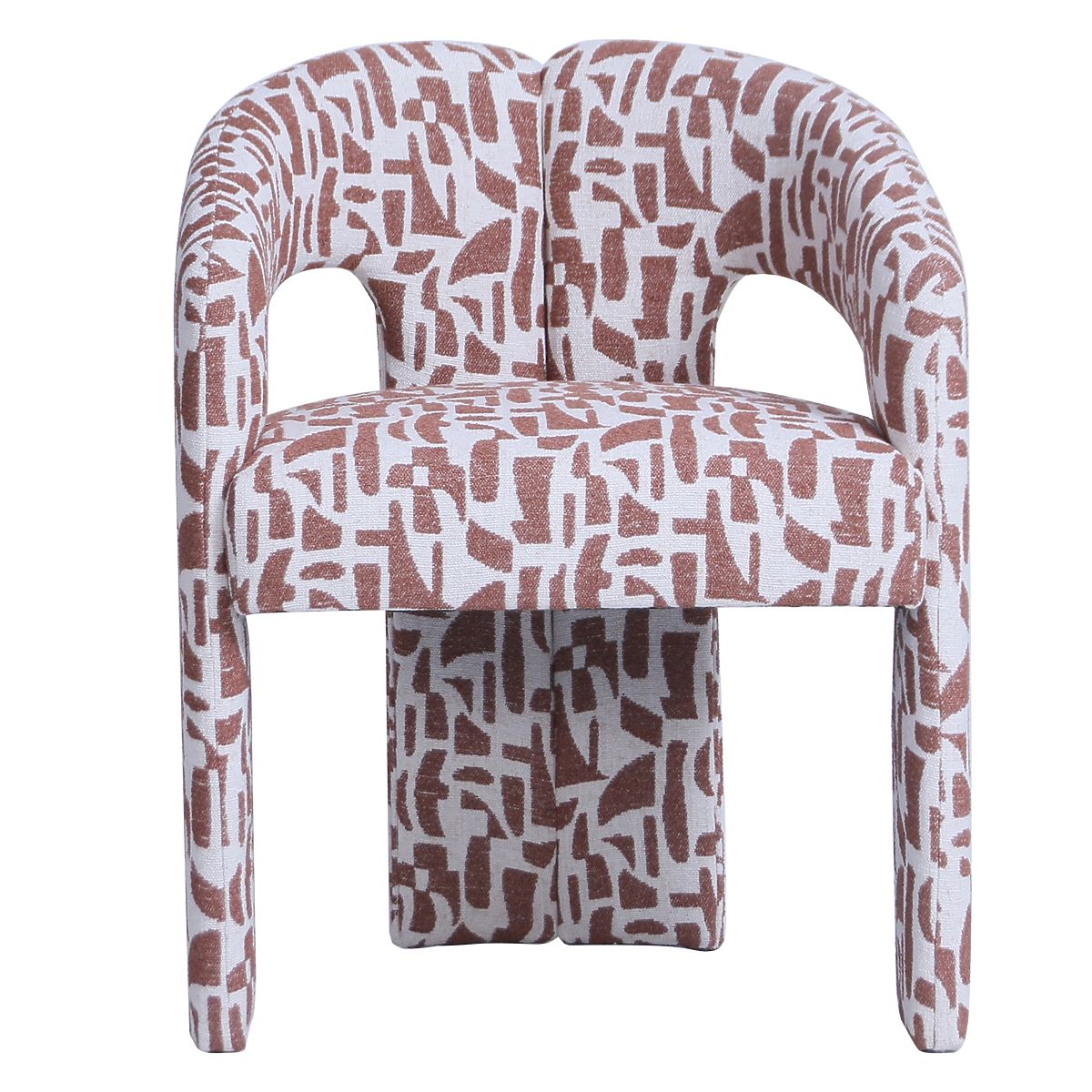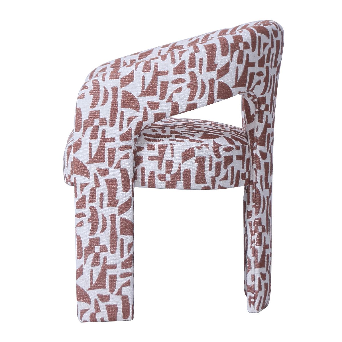 Upholstered chair with burgundy-brown fabric and unique arched shapes. .. more
