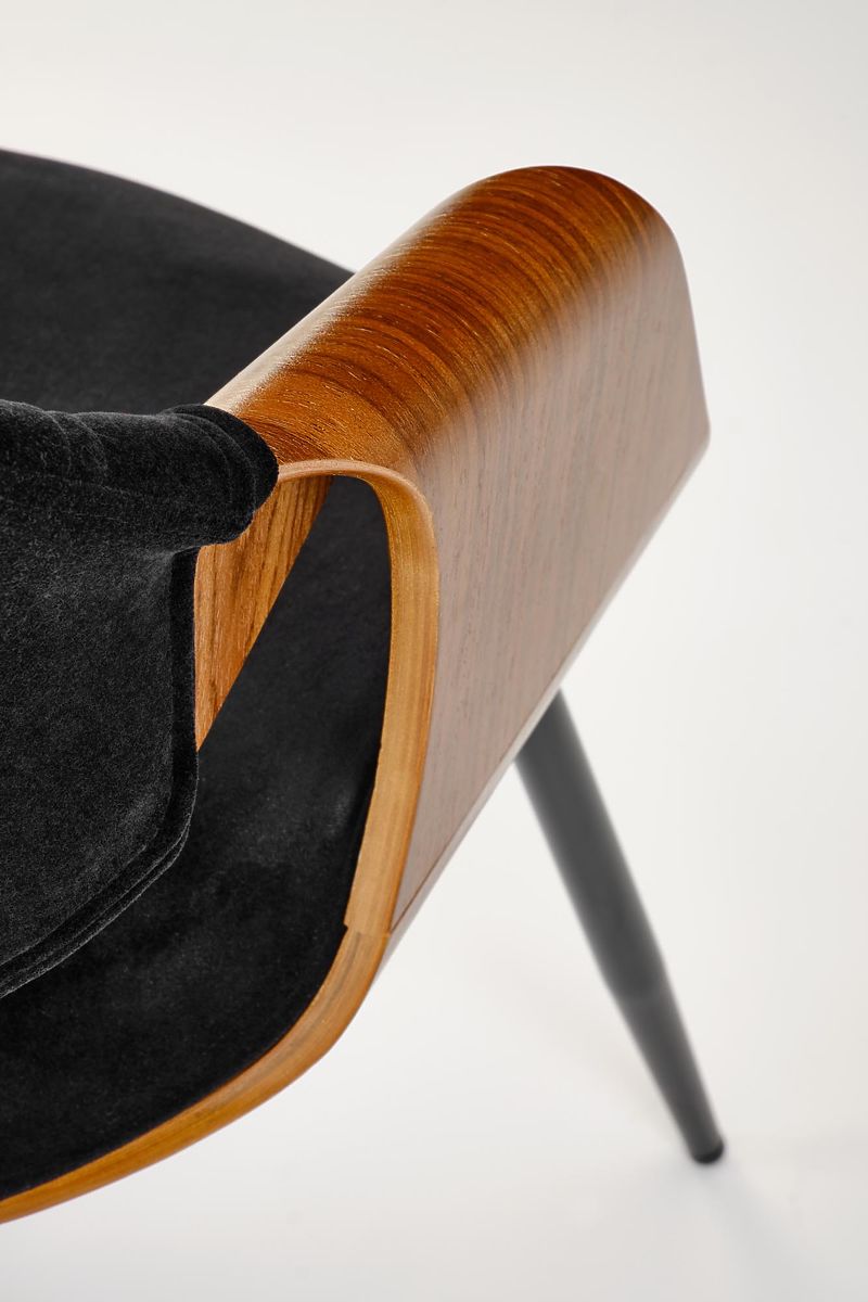 Walnut and black chair with velvet fabric and steel frame. .. more