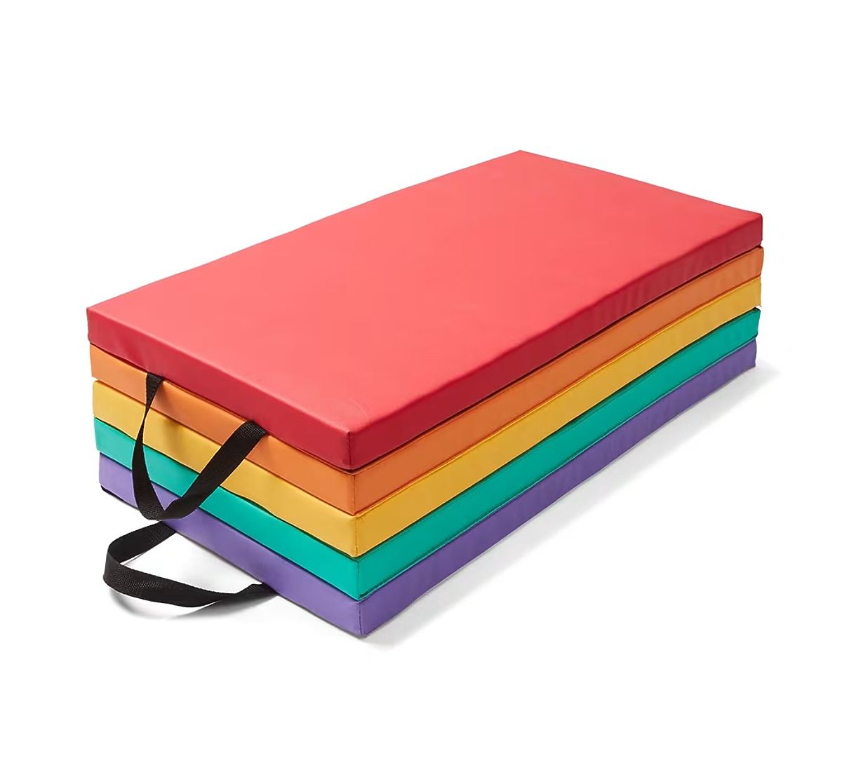 Colorful exercise mat with rainbow design and practical handles. .. more