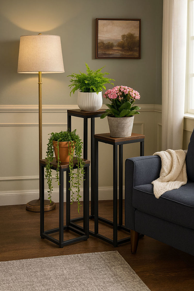 • What plants are suitable for plant stands? Plant stands are suitable for both smaller decorative indoor plants (e.g., succulents, ferns, pilea) and kitchen herbs (e.g., basil, mint). Hanging types, like ivy or spider plants, also look great on lower levels.