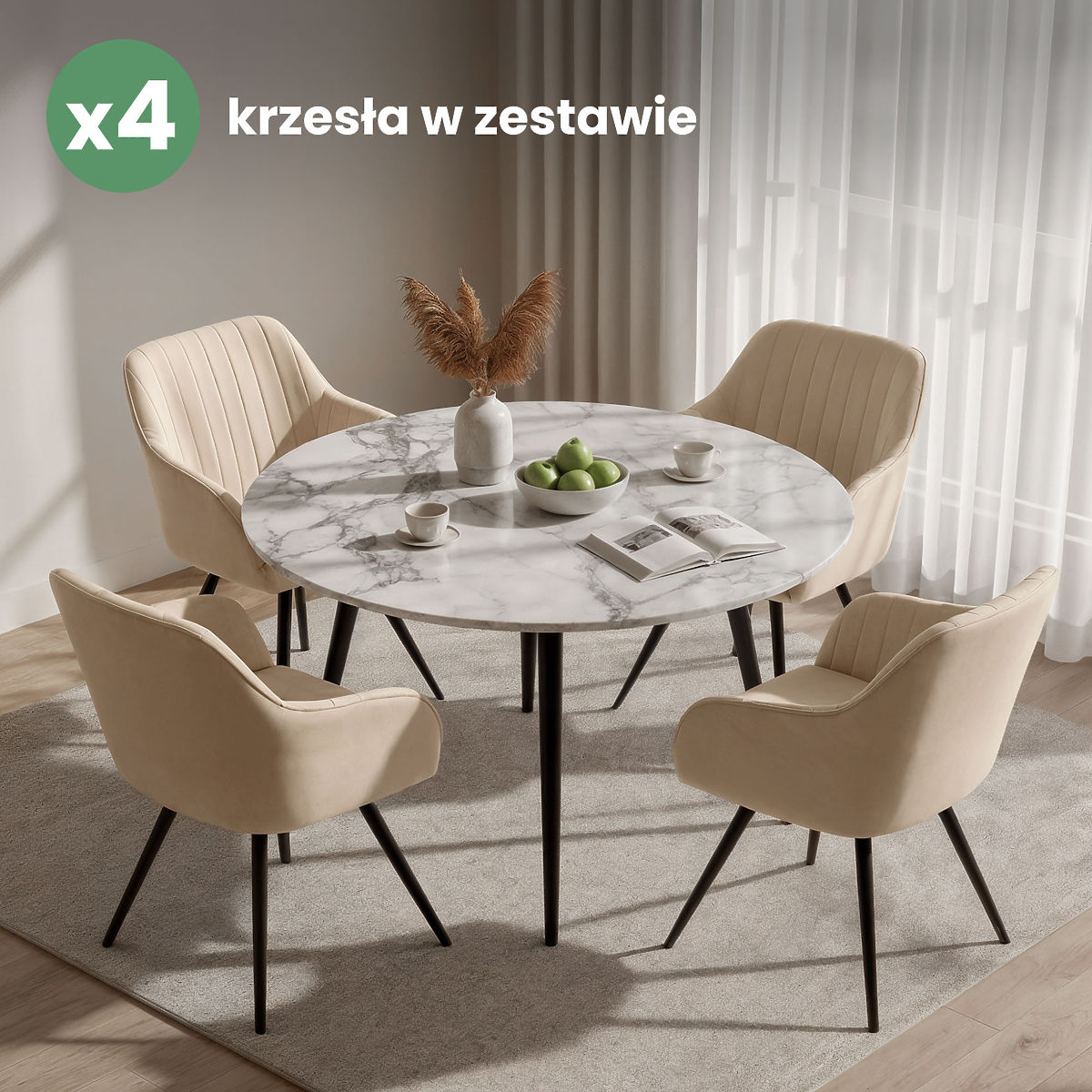 Lukahome.co.uk » Jídelna a kuchyně / Jídelní židle / 4x Velvet Swivel Chair with Stitching Beige TURNO Black Legs