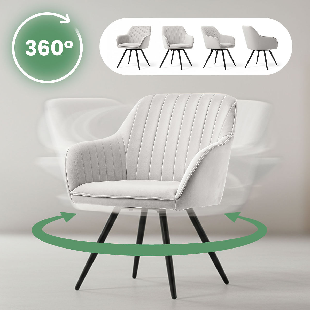 Lukahome.co.uk » Jídelna a kuchyně / Jídelní židle / 6x Velvet Swivel Chair with Stitching Gray TURNO Black Legs