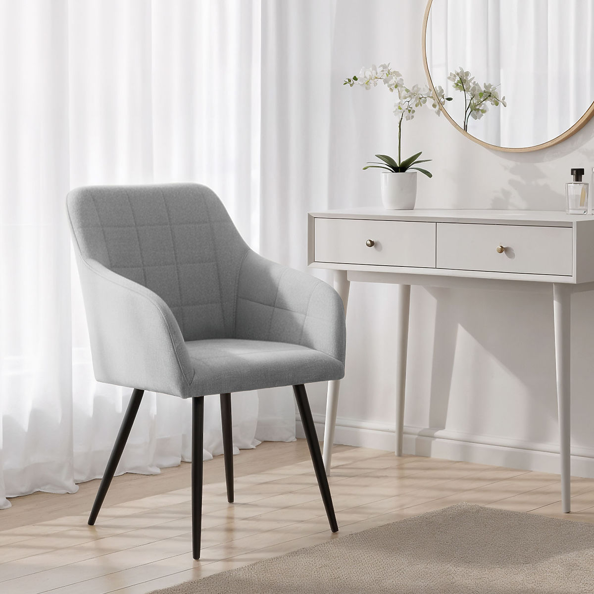 Upholstered dining chair with soft lines and beautiful quilting. .. more