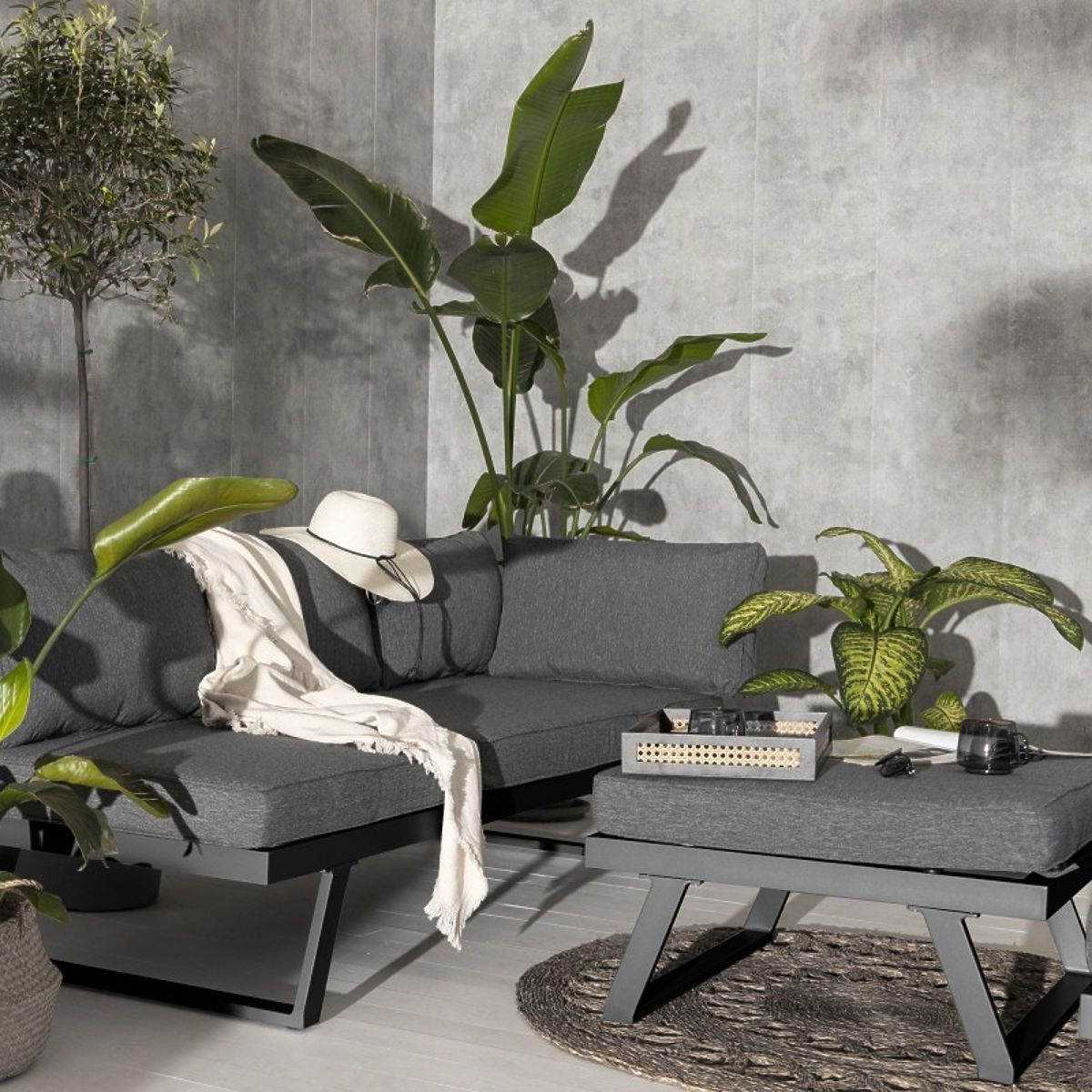 Lukahome.co.uk » Garden furniture / Garden sofas / Lafoole Lunge Garden Corner Sofa with Table, Spun-Poly, Dark Gray