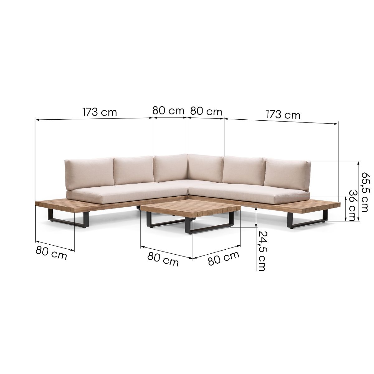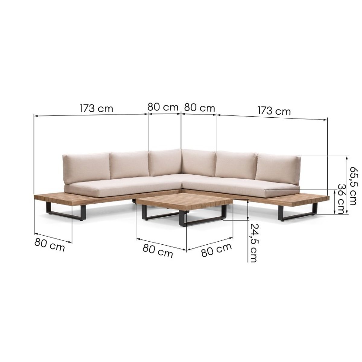 Garden Corner Sofa with Table Borgo, Acacia Wood FSC, Teak Look, Beige
