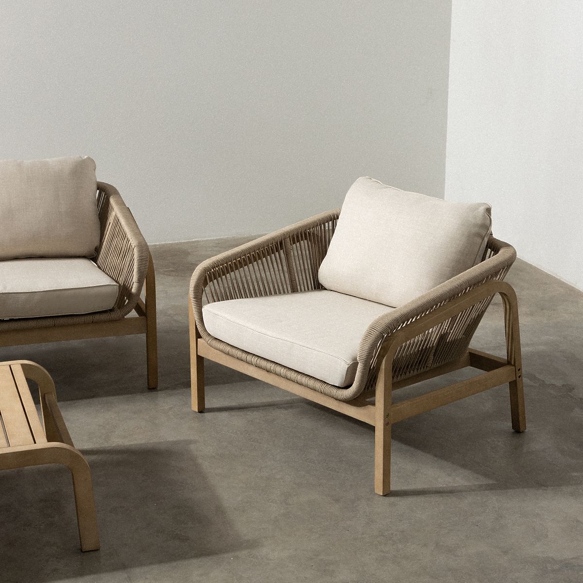 Elegant garden set with eucalyptus wood and rope weaving. .. more