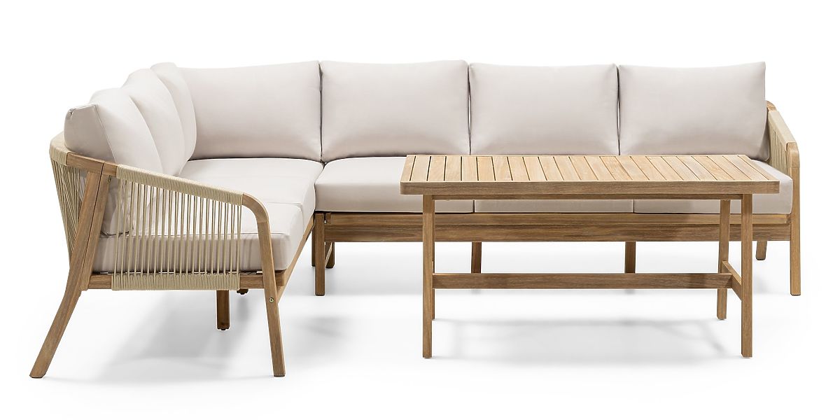 Lukahome.co.uk » Garden furniture / Garden sets / Garden Corner Set with Table Castello, Wicker, Acacia Wood FSC, Teak Look, Beige