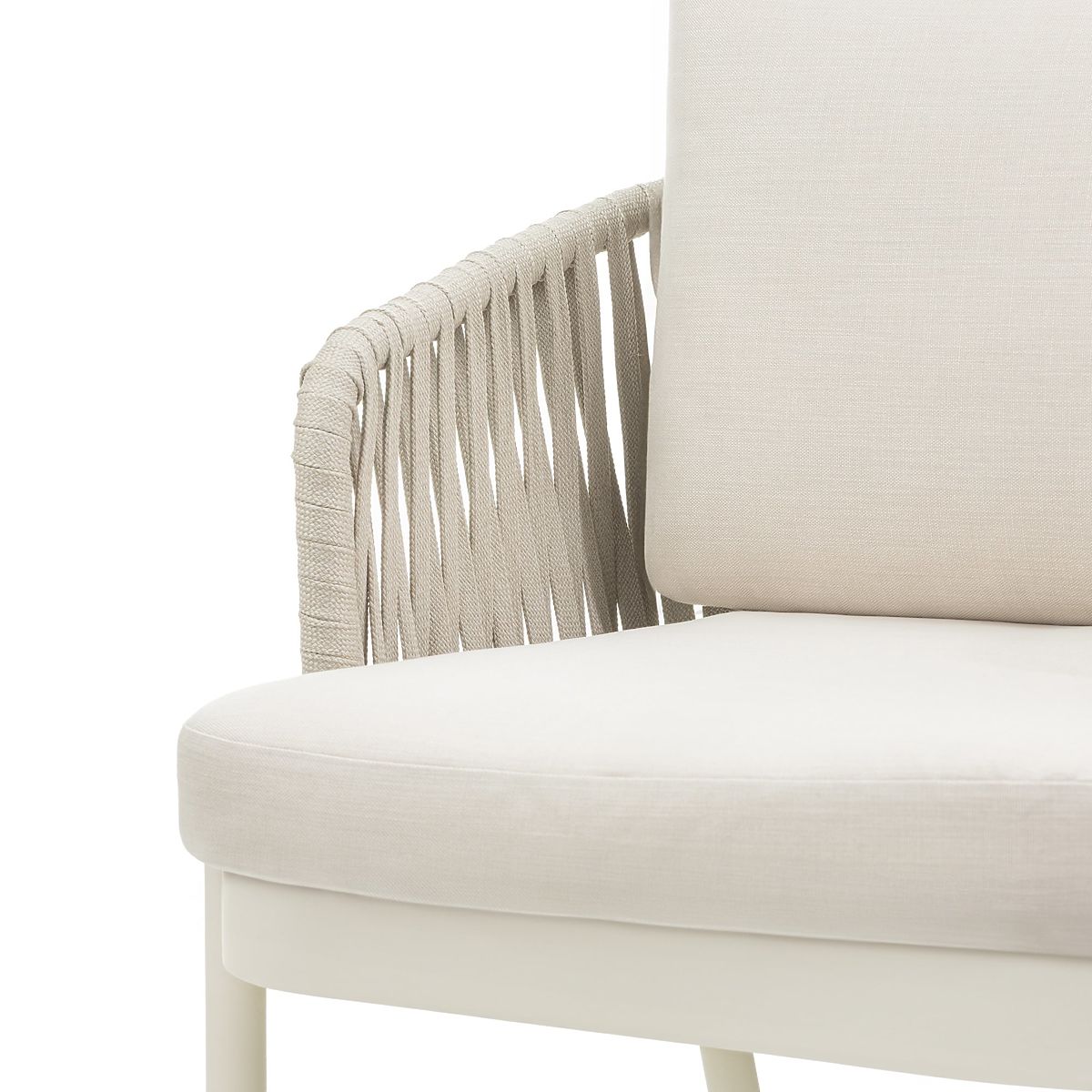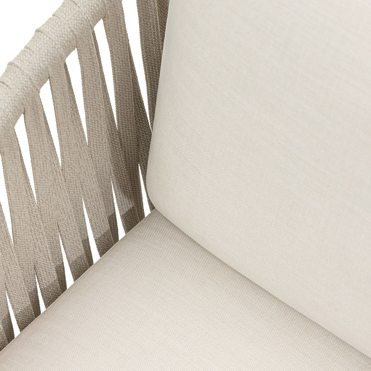 - Includes light beige cushions with a thickness of 15 cm (backrest) and 10 cm (seat)