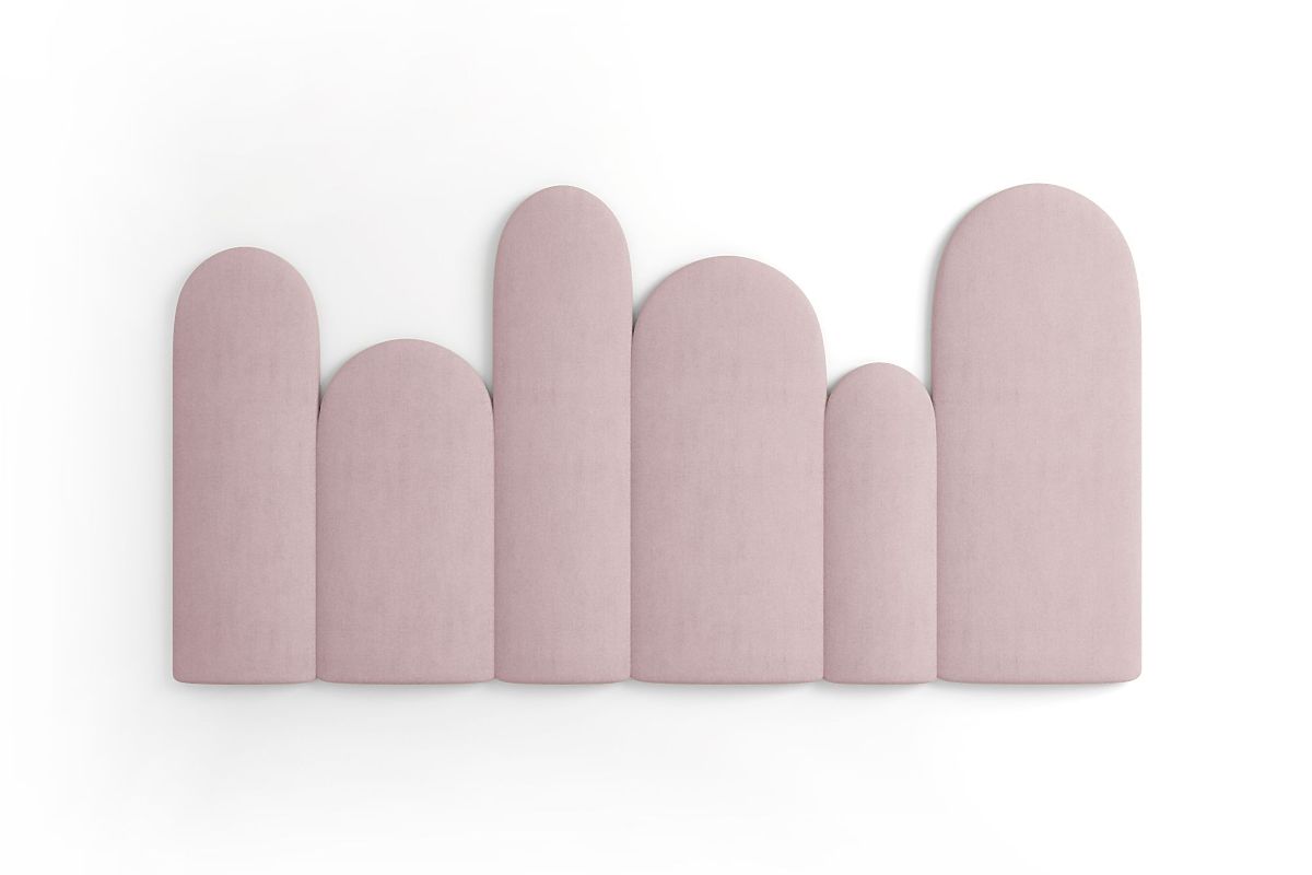 Set of 6 pink upholstered panels with a decorative fence shape. .. more